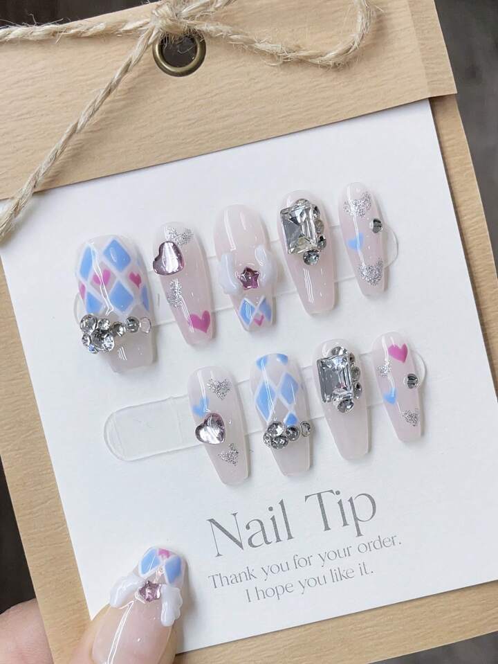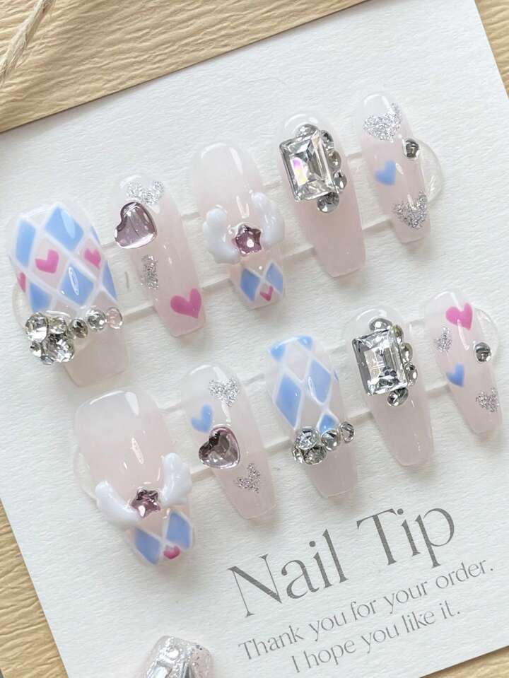 Kawaii 10 Stücke Lang Sarg Herz Strass Dekor, Kunstnägel Bausatz