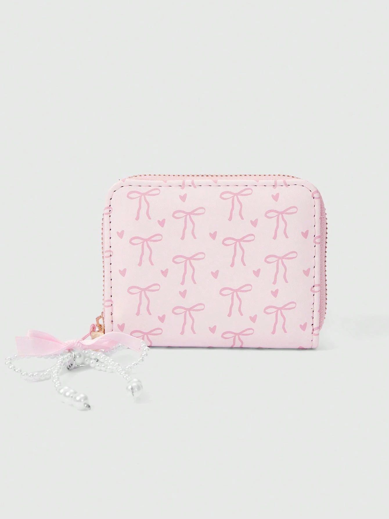Kawaii 1 Stück Geldbörse mit Schleifen-Muster im einfachen Stil, geeignet für Frauen.