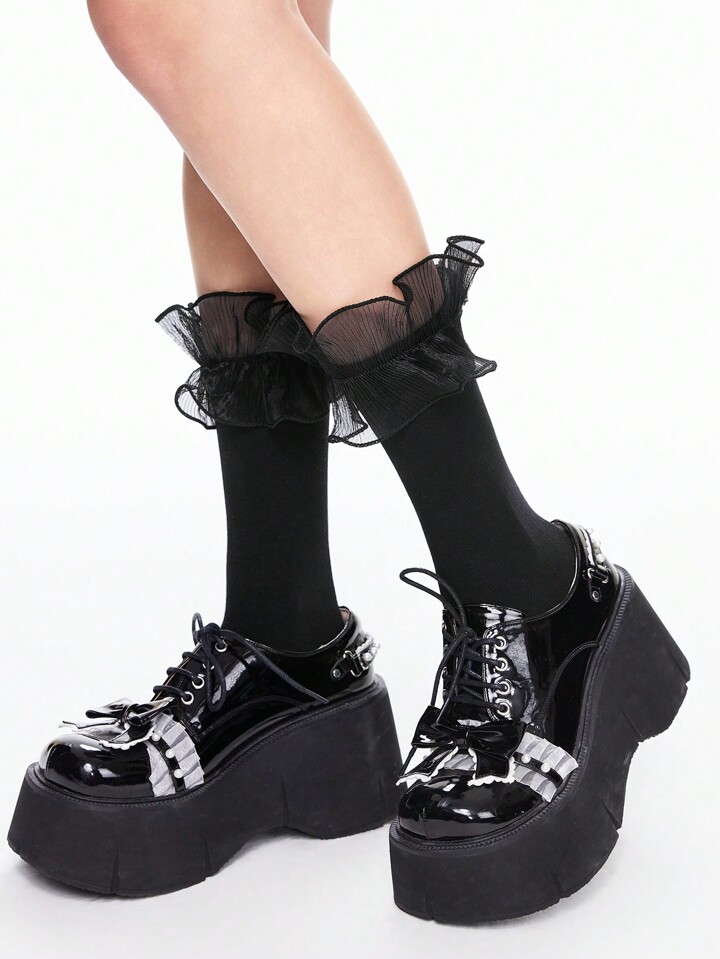 Kawaii 1 Paar schwarze süße Spitzen-Rüschen College-Stil Knöchelsocken für Frauen