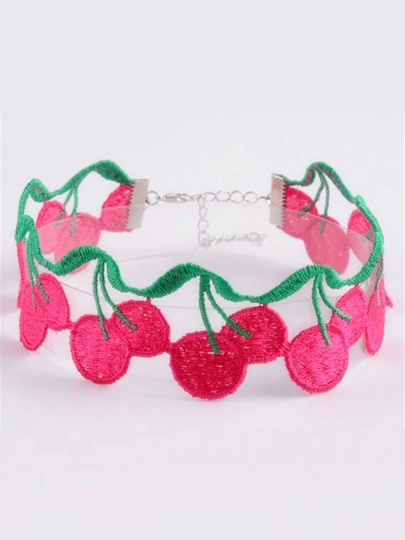 Kawaii 1 Stück kreative Kirschenstickerei Halskette, erfrischender Stil für Mädchen
