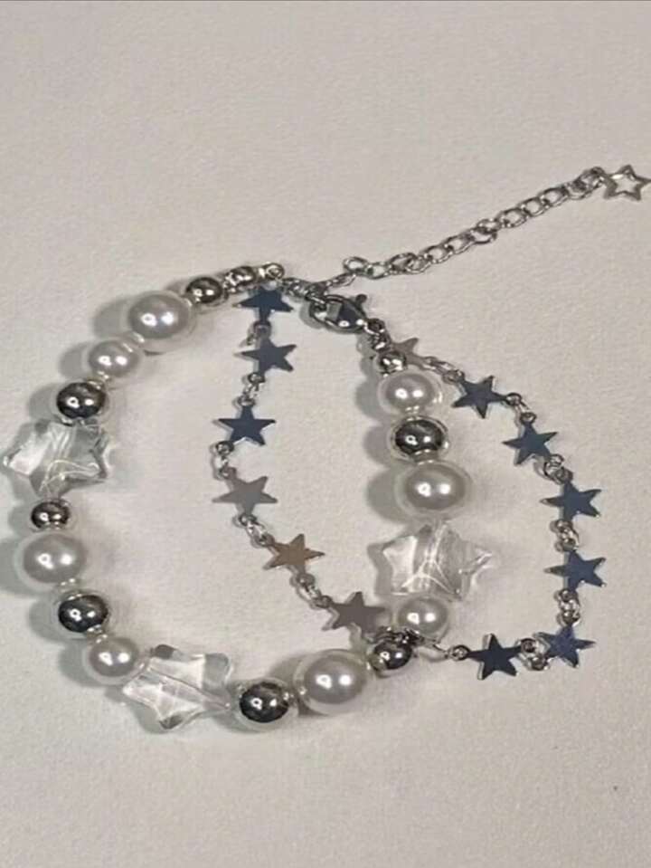 Kawaii 1 Stück Modische Zinklegierung Stern & Kunstperle Dekor Armband Für Frauen Für Tägliche Dekoration
