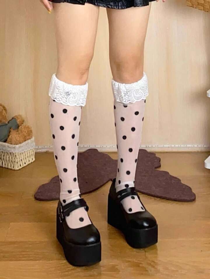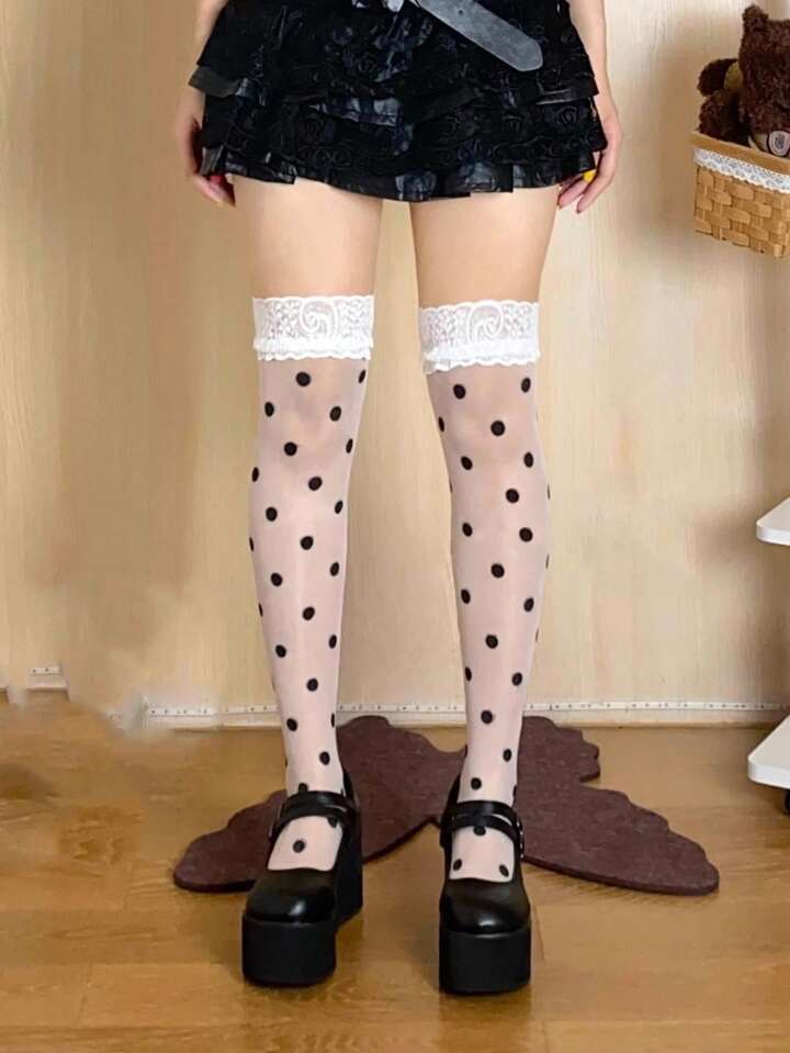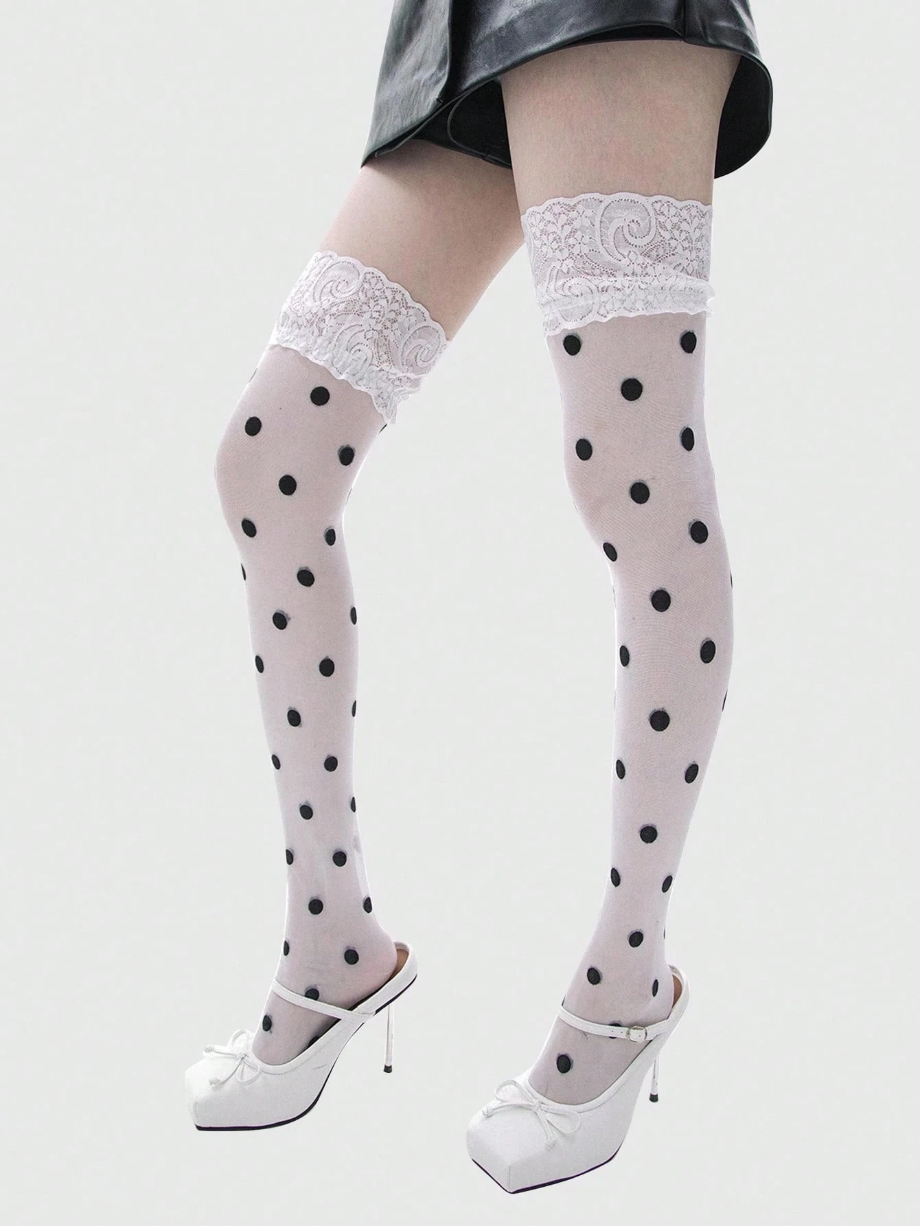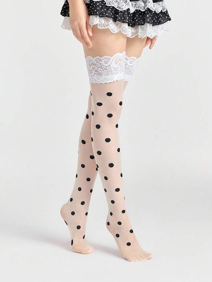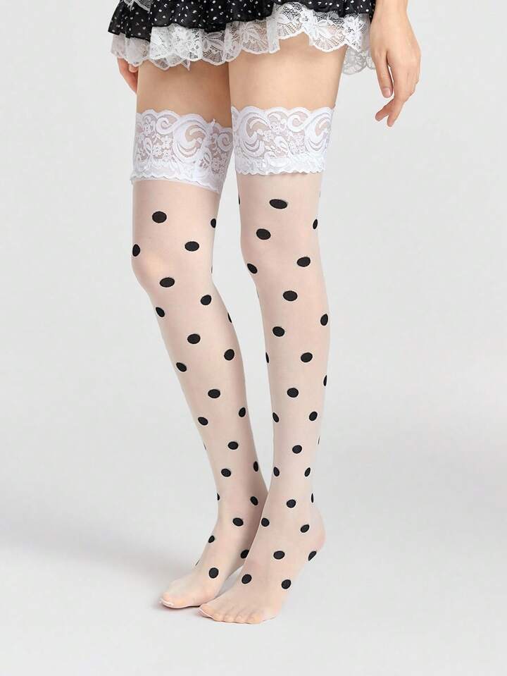Kawaii 1 Stück modische weiße Strumpfhose mit Punktmuster, Damen Sommer dünne Strumpfhose/Leggings