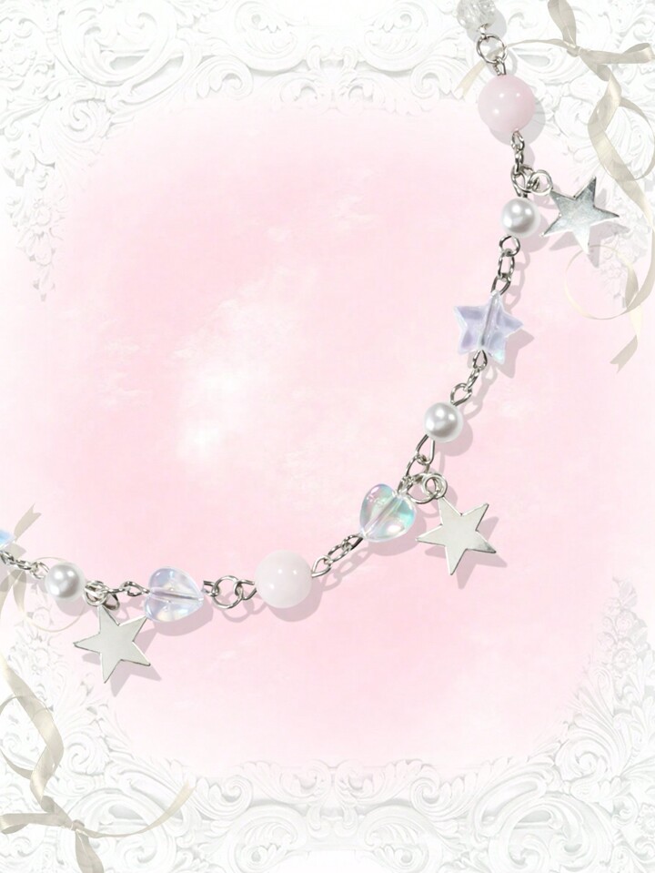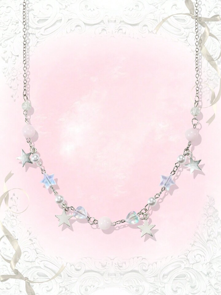 Kawaii 1 Stück Schöne Halskette Mit Stern-, Herz- Und Kunstperlen-anhänger