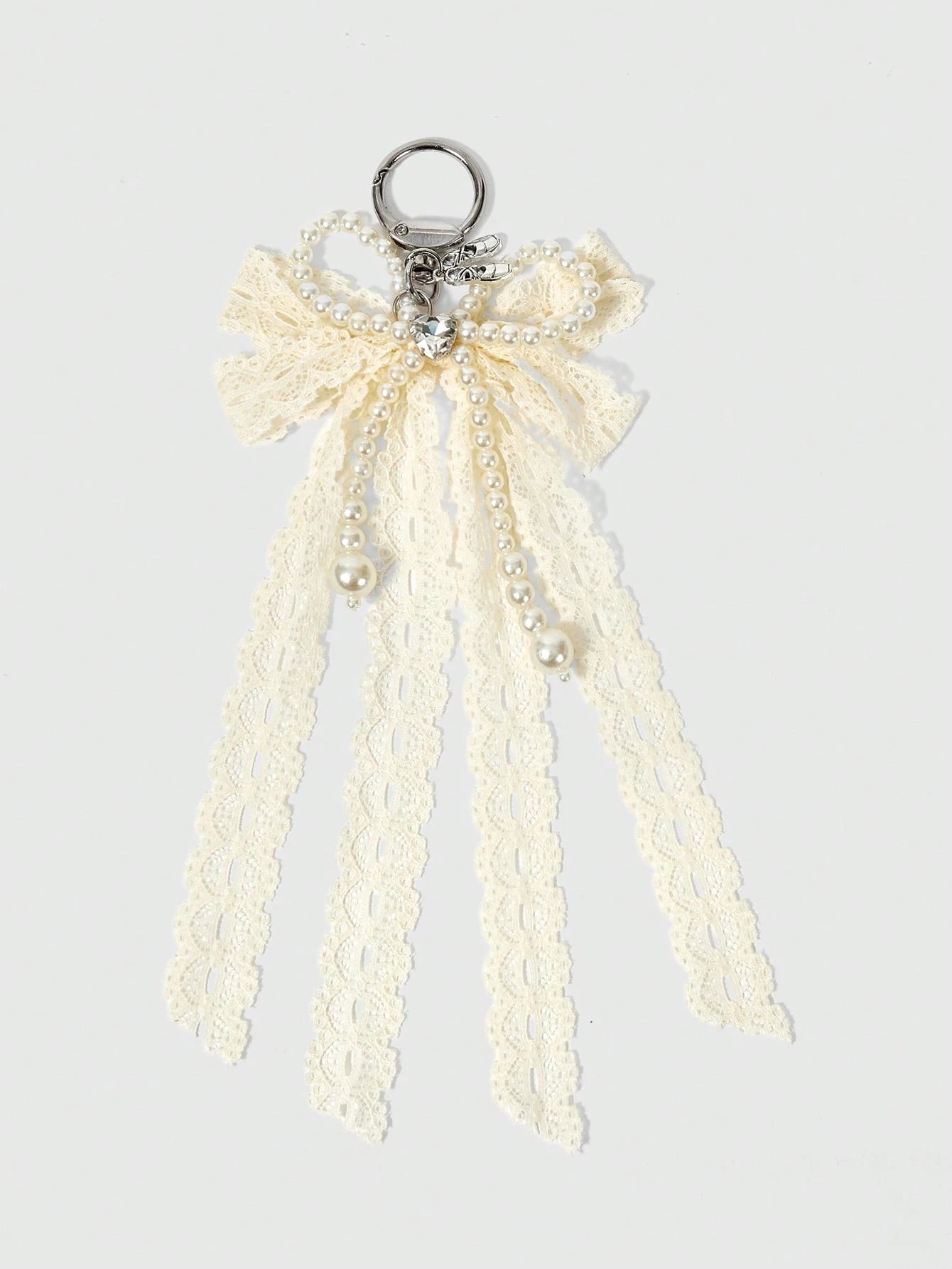 Kawaii 1 Stück Rosa Schleife & Perle Dekor Schlüsselanhänger Taschenanhänger