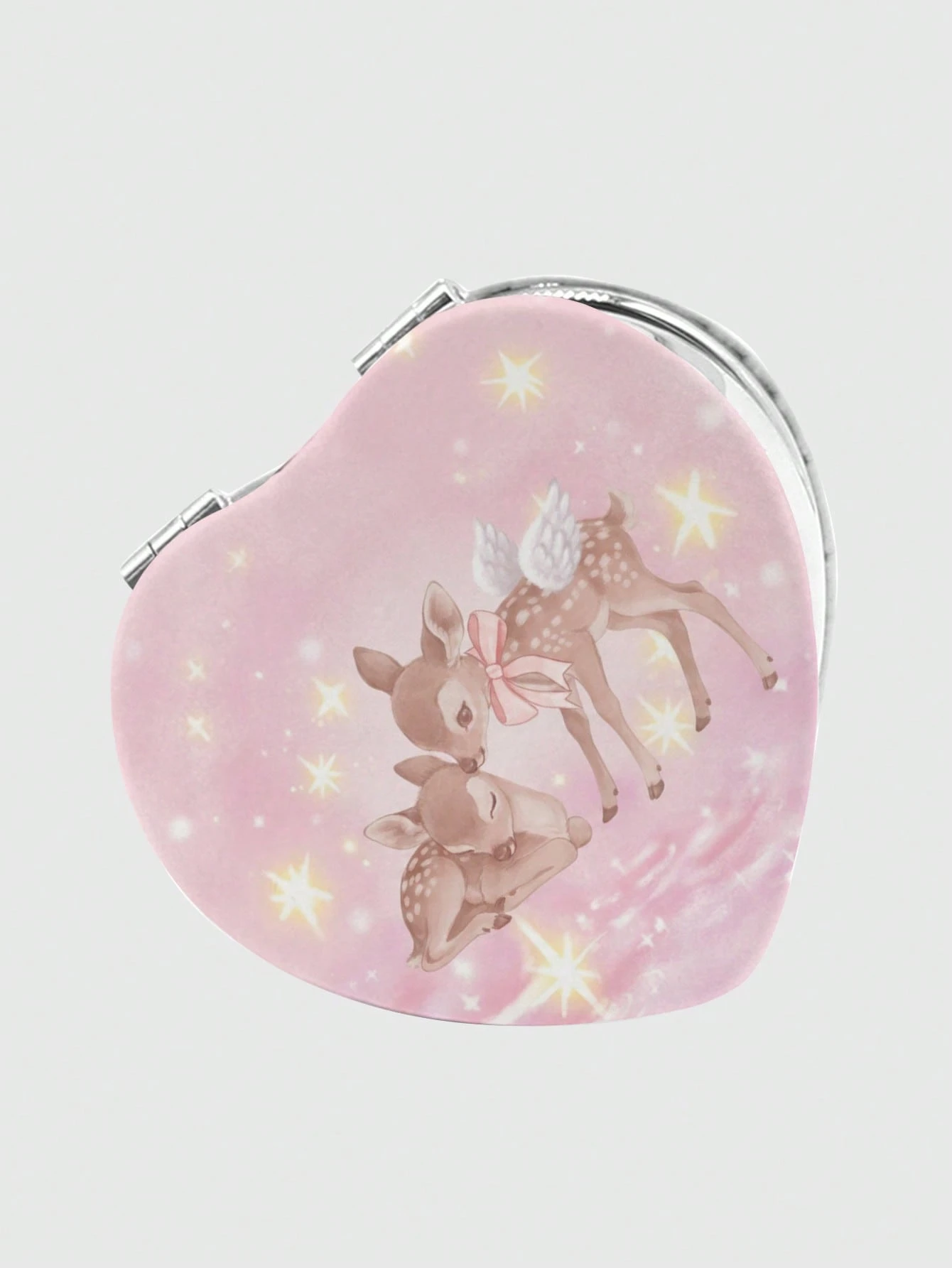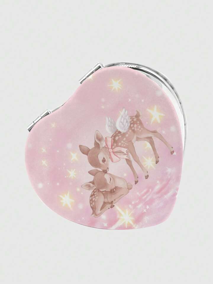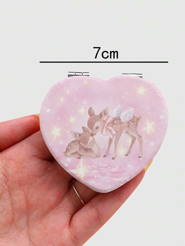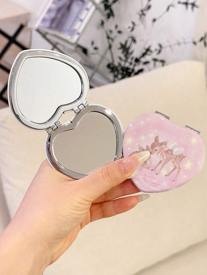Kawaii 1 Stück rosa Schleife PU Herzförmiger Make-up Kompaktspiegel, zufälliges Muster