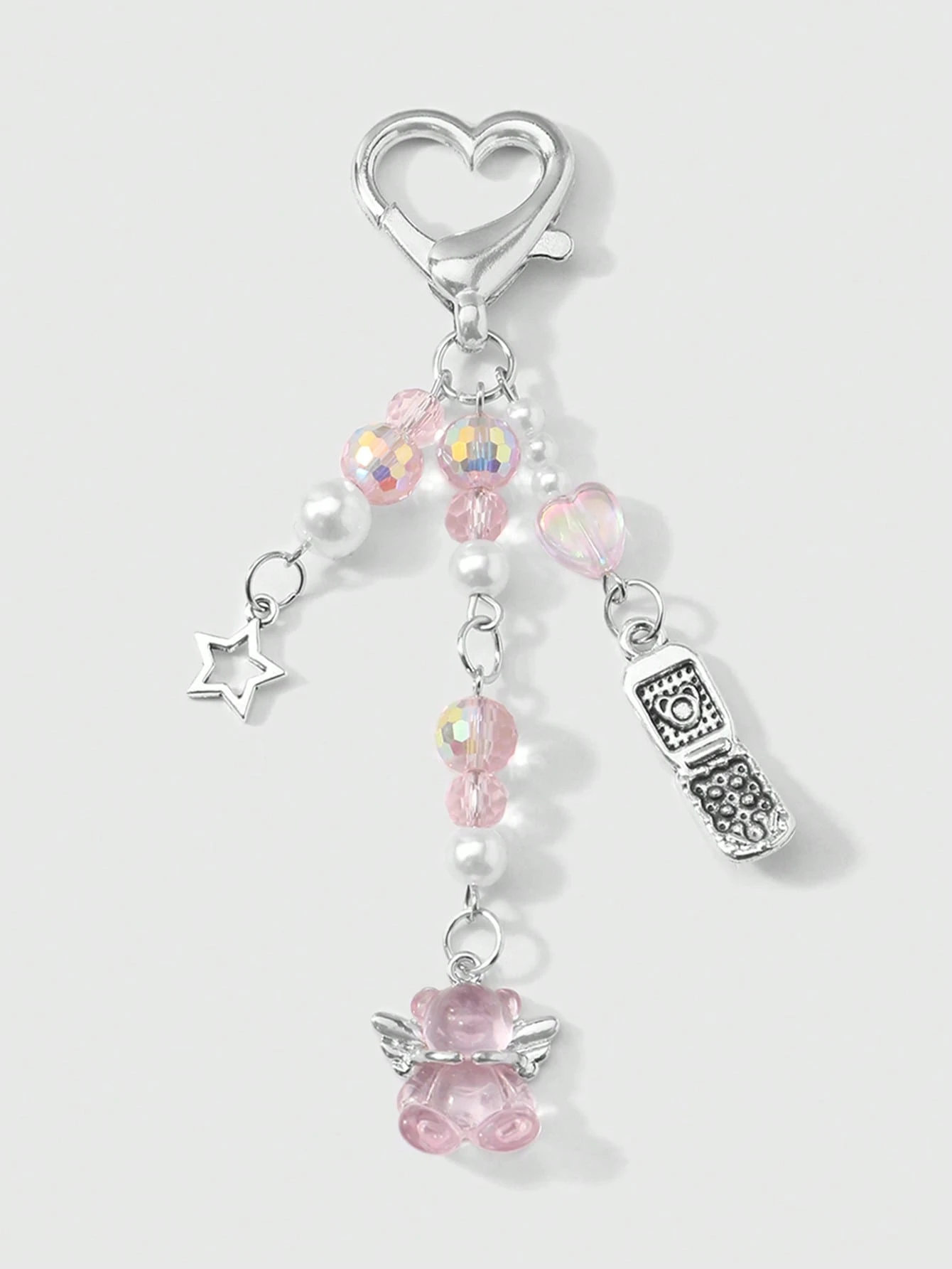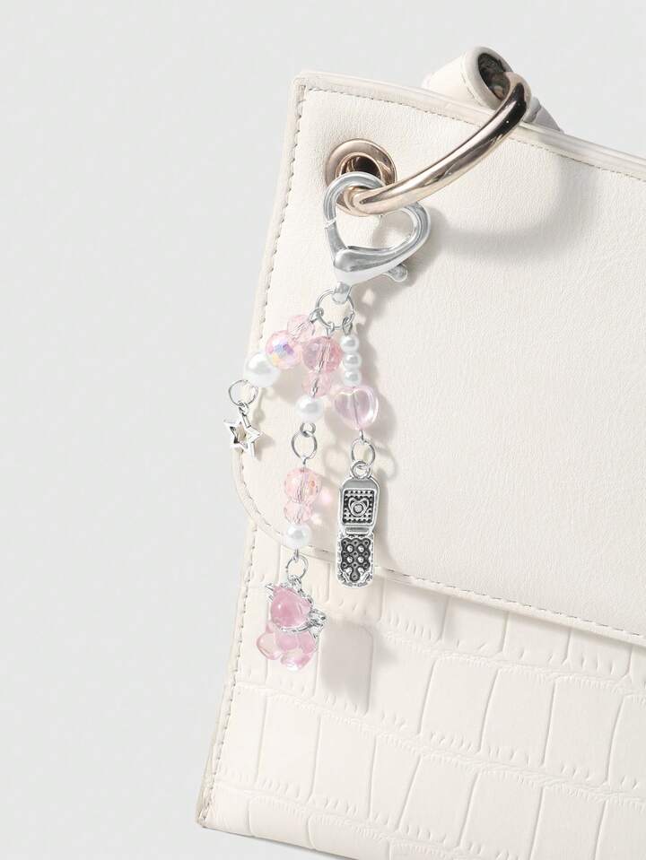 Kawaii 1 Stück raffinierter & süßer Mädchen minimalistischer akademischer Stil Silberkette mit Perle & Kristall runden Kugeln, Sternen, Erdbeere Schleife Cartoon Handy Anhänger Schlüsselanhänger Taschenanhänger, geeignet für Frauen, Alltagsmode, Geschenk zu Feiertagen, Valentinstag