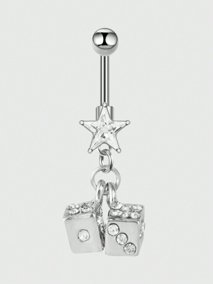 Kawaii 1 Stück Edelstahl Strass Pentagramm Würfel Bauchnabelpiercing für Frauen