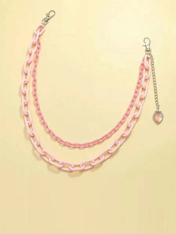 Kawaii 1 Stück süße & coole rosa doppelschichtige acrylische erdbeerförmige Damenhosenkette, Valentinstag Schule