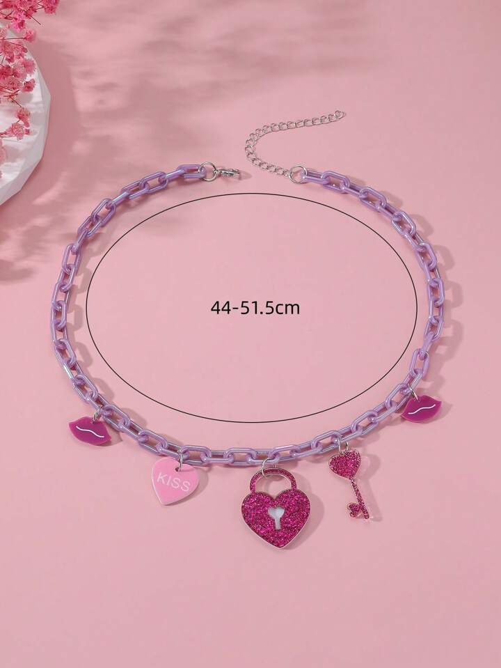 Kawaii 1 Stücke Valentinstag Glitzernde Herzschloss Schlüssel Lippen Anhänger Halskette Für Frauen