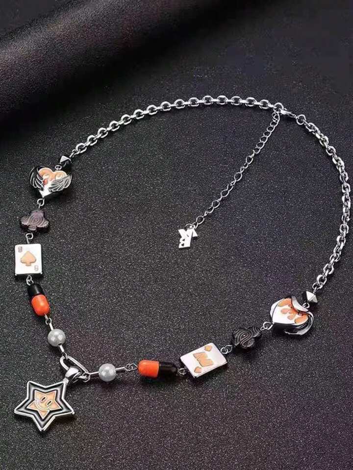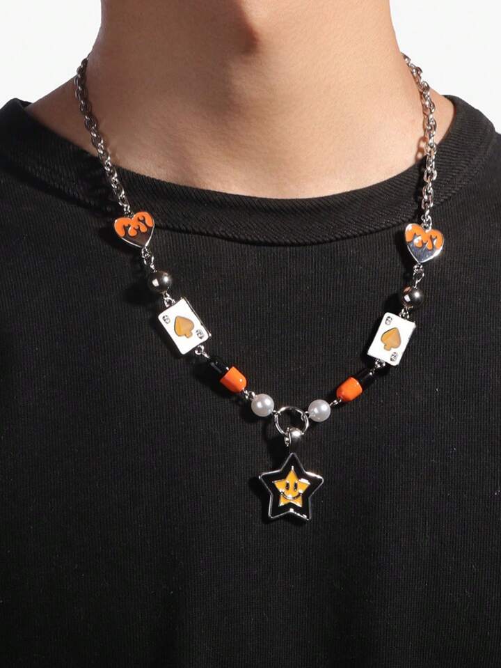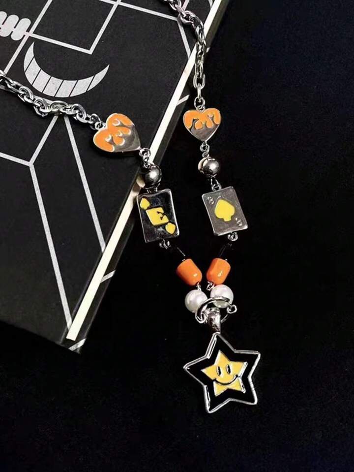 Kawaii 1 Stück Halskette Damen Hip Hop Stil Modisch Orange Stern & glücklich Gesicht