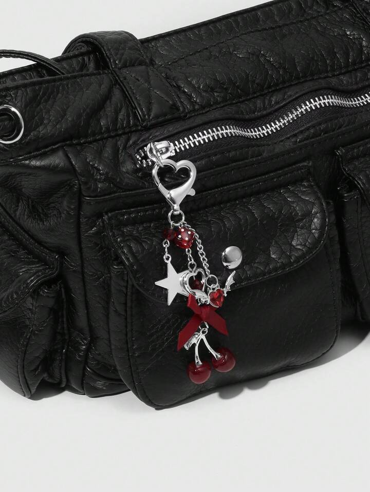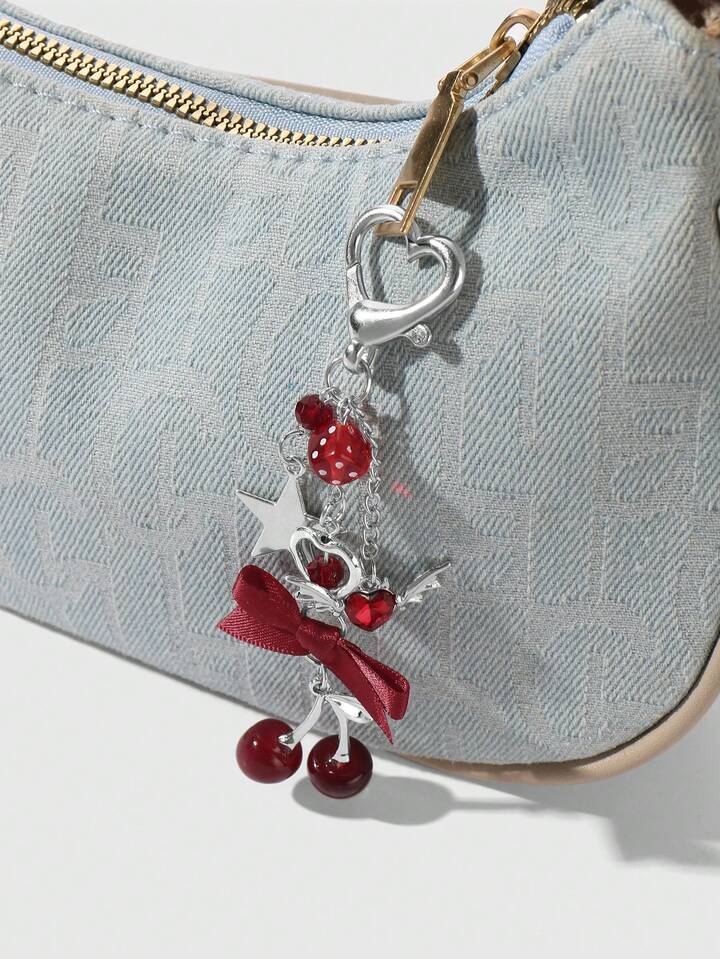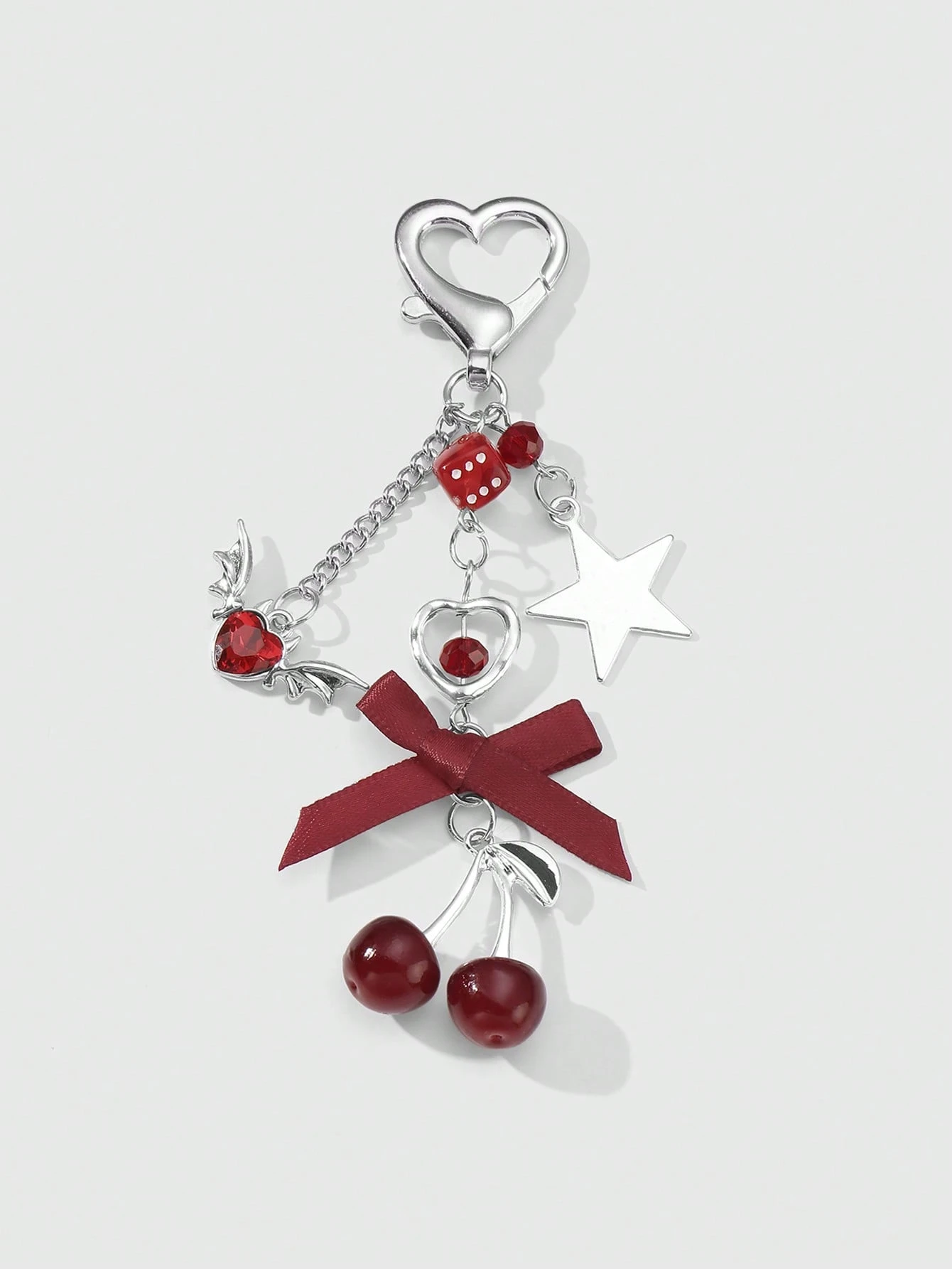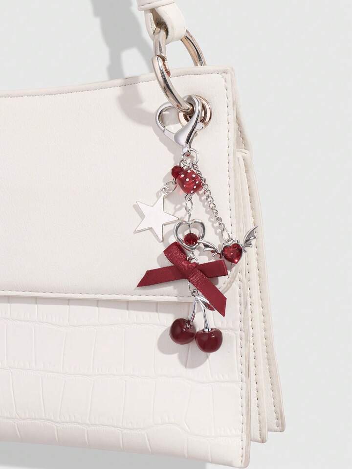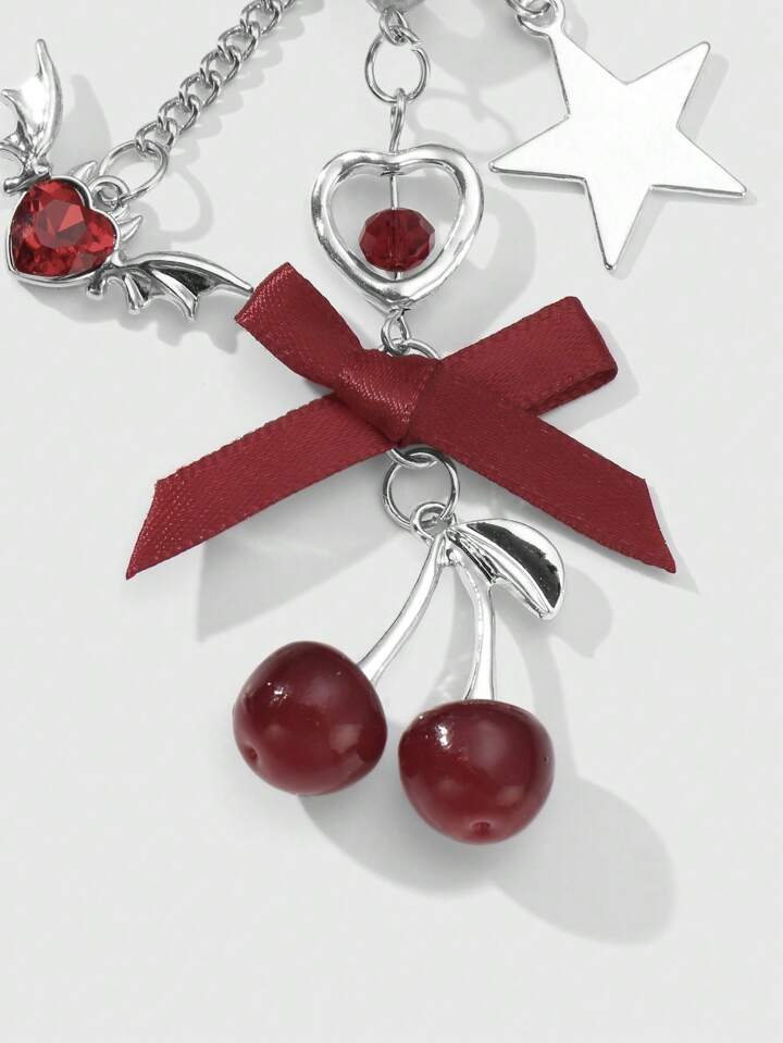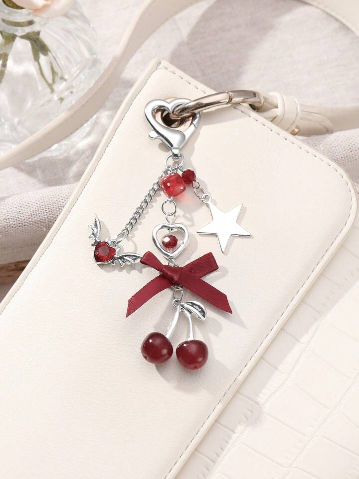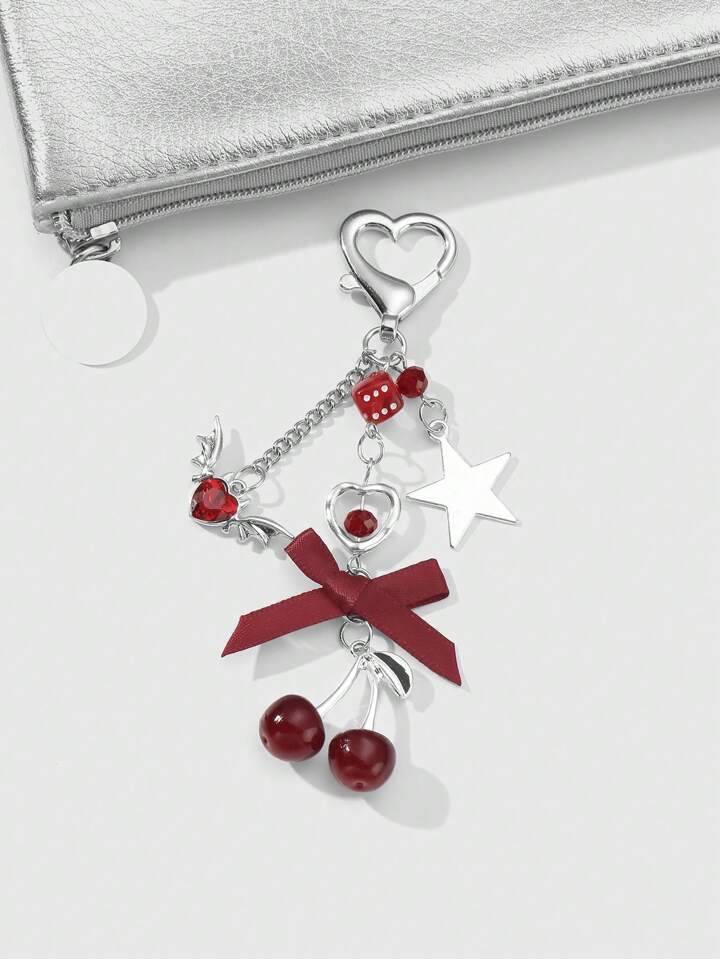 Kawaii 1 Stück Y2K Chic elegante hochwertige Silberkette Stern Würfel Schleife Kristall Flügel Herz Kirsche Anhänger Schlüsselanhänger, geeignet für Frauen/Mädchen Alltagskleidung, Urlaubsgeschenk