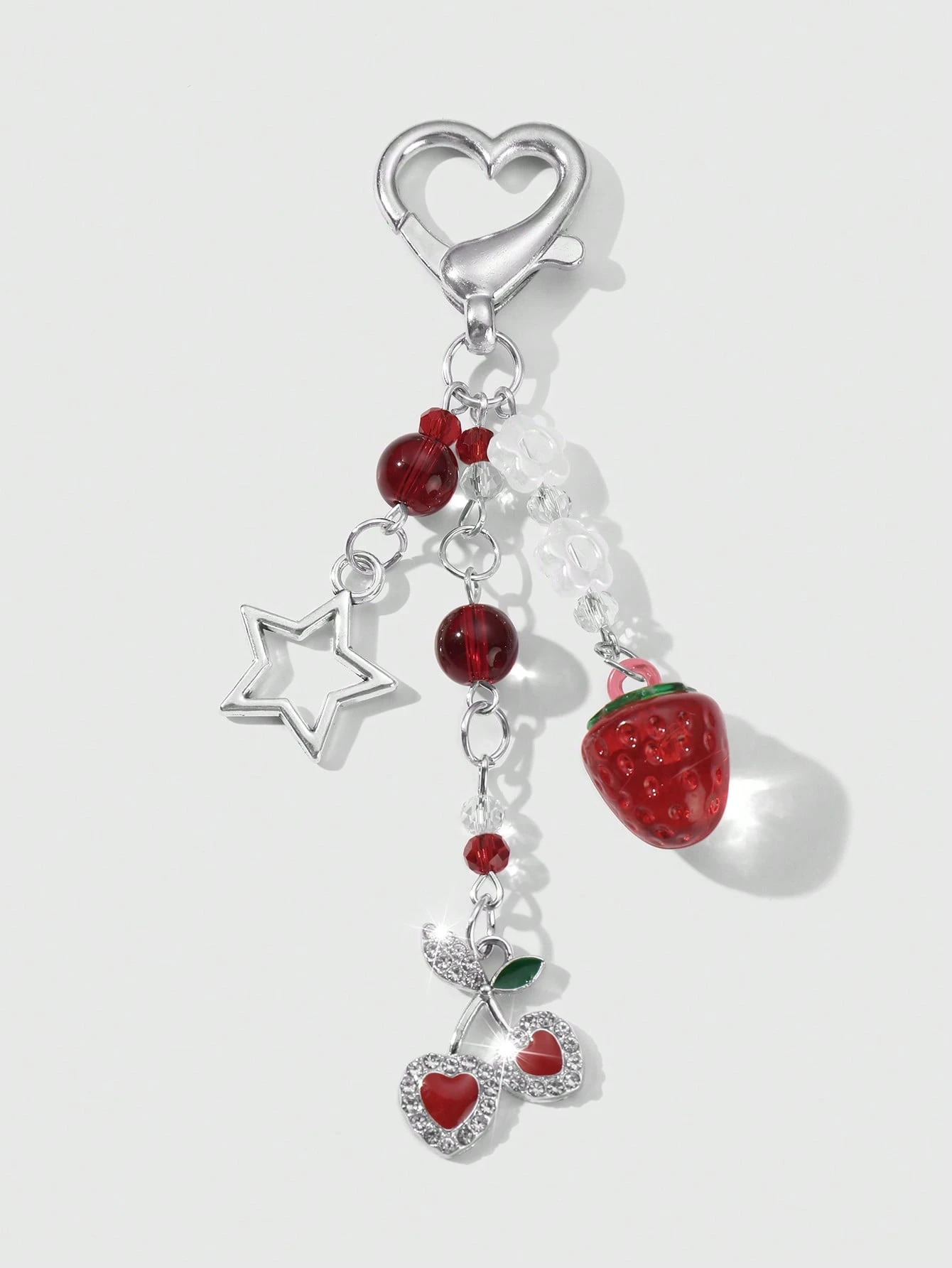 Kawaii 1 Stück Y2K Chic & exquisite hochwertige Silberkette Dekoration mit Stern, Würfel, Schleife, Schleife, Strass, Flügel, Herz, Kirsche Anhänger, geeignet für den täglichen Gebrauch von Frauen, Geschenk