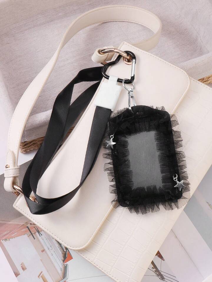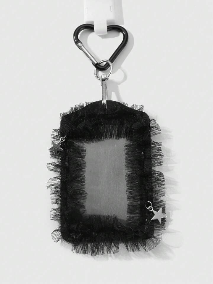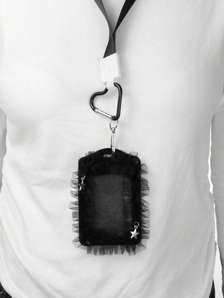Kawaii 1 Stück Y2K Chic Gotik Vibe Schwarz Mesh CCB Stern Anhänger Ausweishalter, Arbeits-ID-Abzeichen mit Schlüsselband, DIY Schlüsselanhänger Taschenanhänger, geeignet für Büromitarbeiter, Studenten, Alltagskleidung, Urlaubsgeschenk
