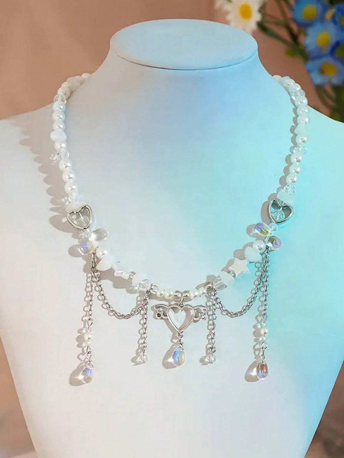 Kawaii 1 Stück Y2K-Design Faux-Perlen- & Herzanhänger-Halskette, süßes & cooles Schmuckgeschenk