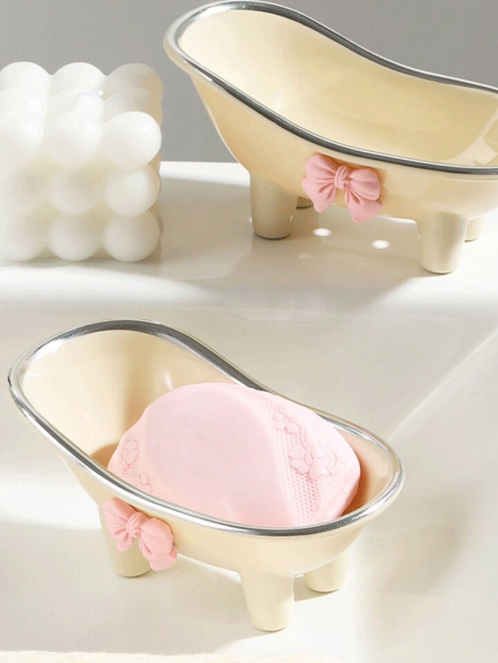 Kawaii 1 Stück gelbe, badewannenförmige Seifenschale mit Schleife