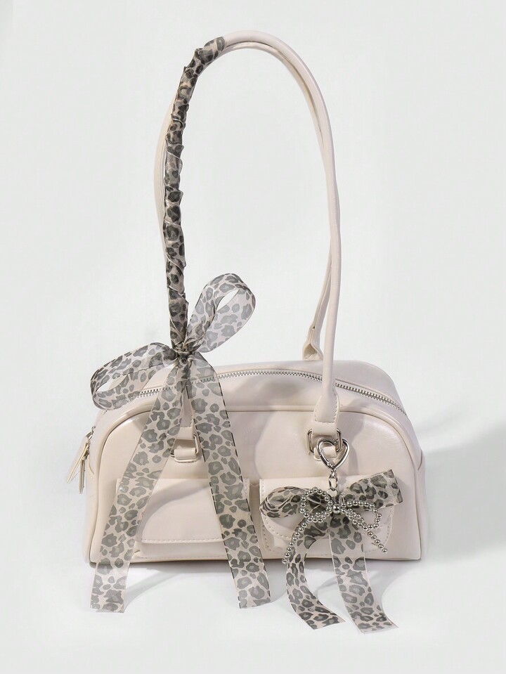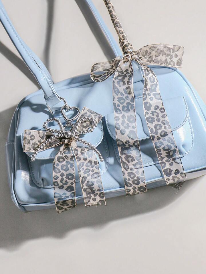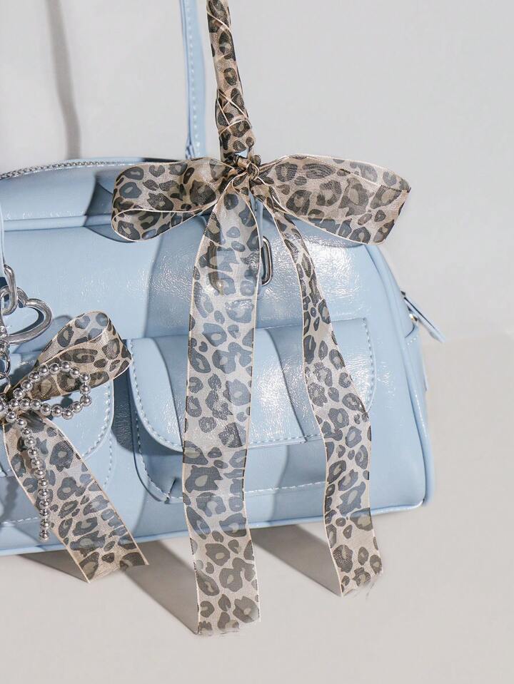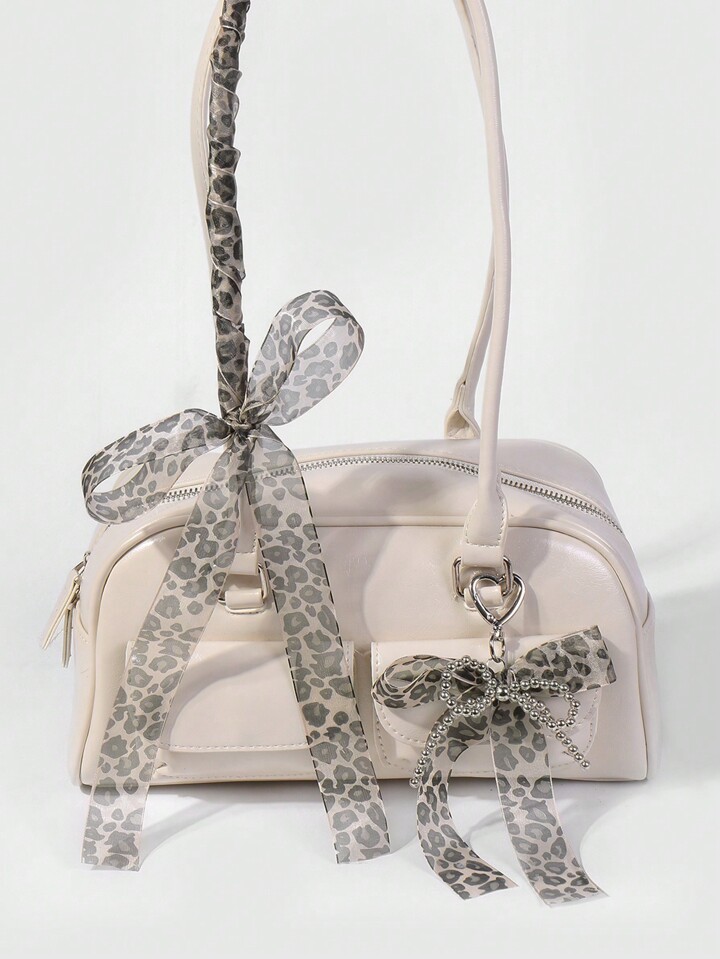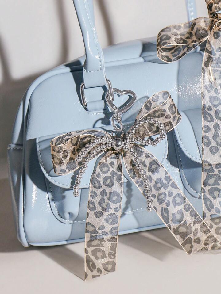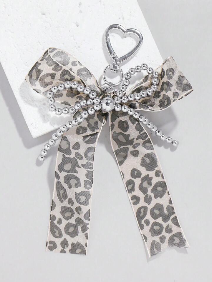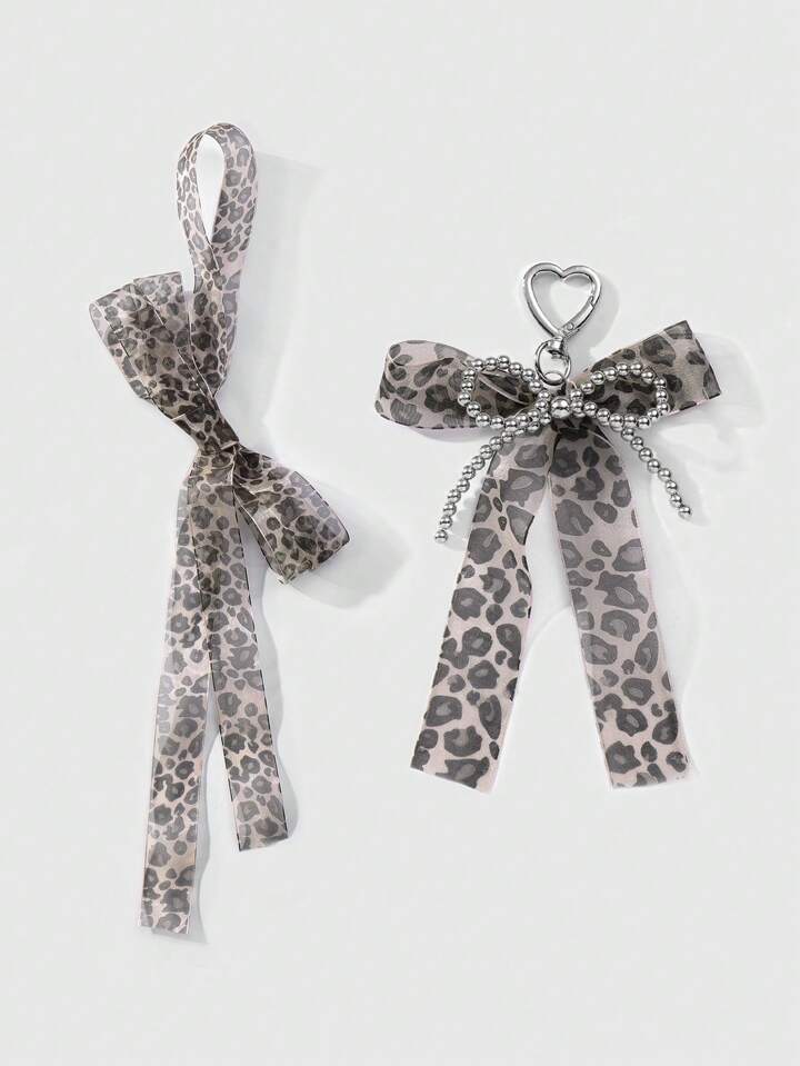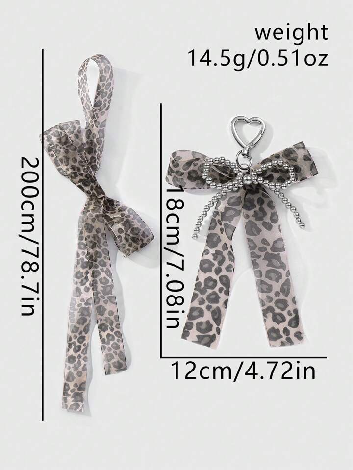 Kawaii 2 Stücke handgemachter CCB Perlen Spitze Schleife mit Leopardenmuster + 150 cm Spitzen Leopard Scrunchie Geschenkset, Mode Schlüsselanhänger Zubehör Taschenanhänger für Frauen und Mädchen