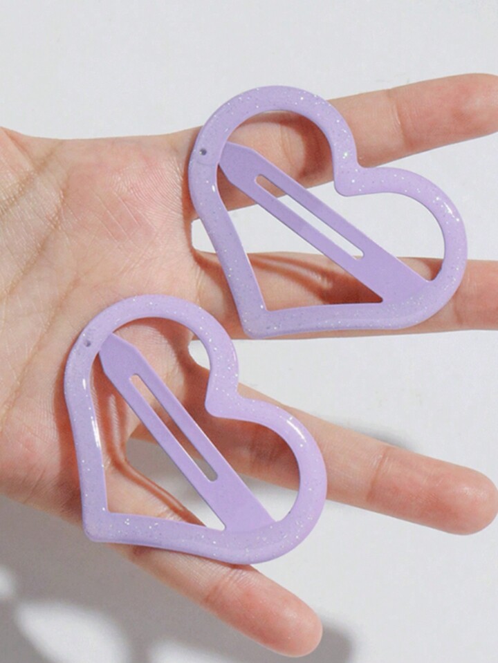 Kawaii 2 Stücke violette YSK Stil dünne glitzernde Herz Quaste Haarclip