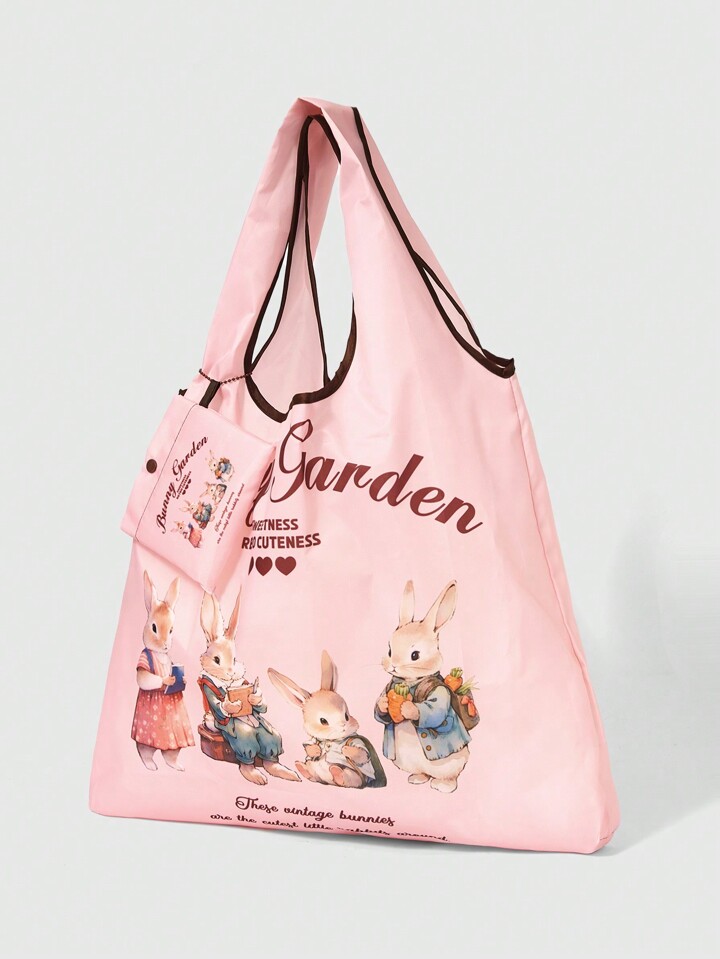 Kawaii 2 Stücke/set Tasche Zum Einkaufen Mit Cartoon Hasenmuster Und Münzgeldbörse, Faltbar, Mit Großer Kapazität Und Tragbaren Griffen 492037