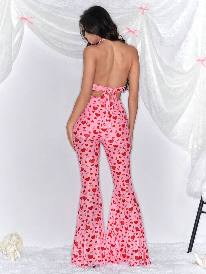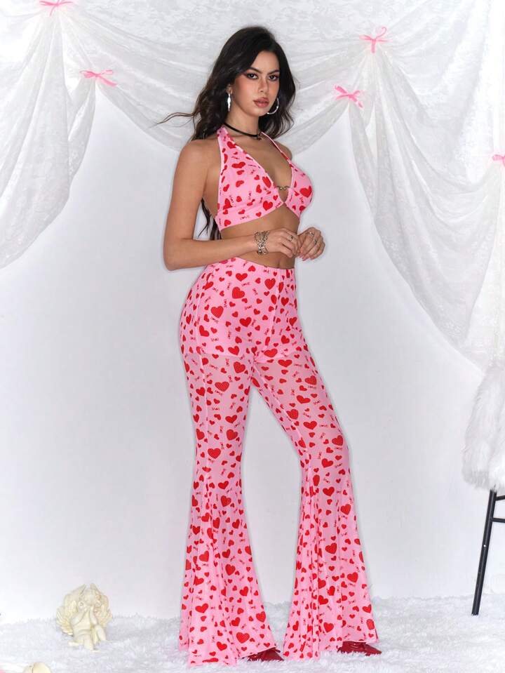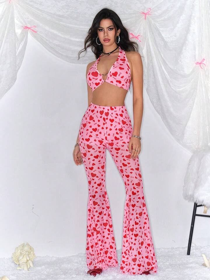Kawaii 2 Stücke Set Damen Trägertop mit Herz Muster und lange Hose, lässiger Stil