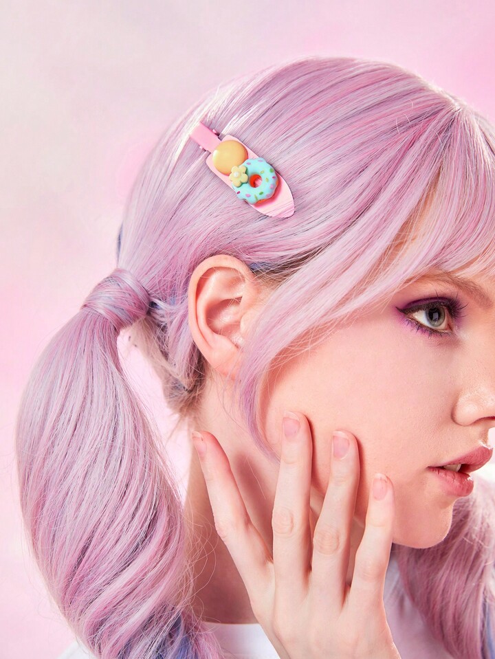 Kawaii 2 Stücke Haarspangen mit Donut Dekor für Damen