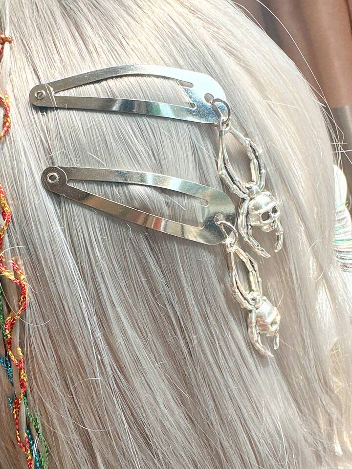 Kawaii Frauen 2 Stücke Haarklammer Schädel Dekor