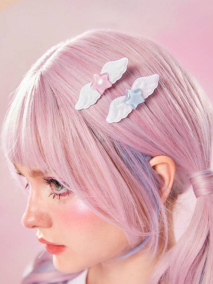 Kawaii 2 Stücke Haarspange mit Flügeldekor für Damen