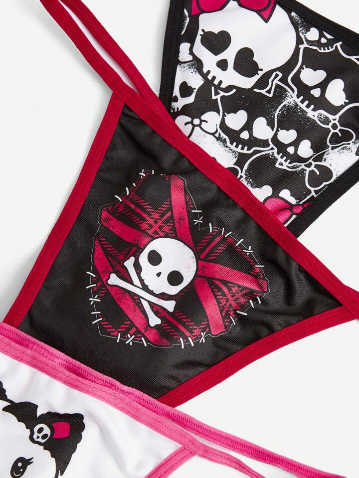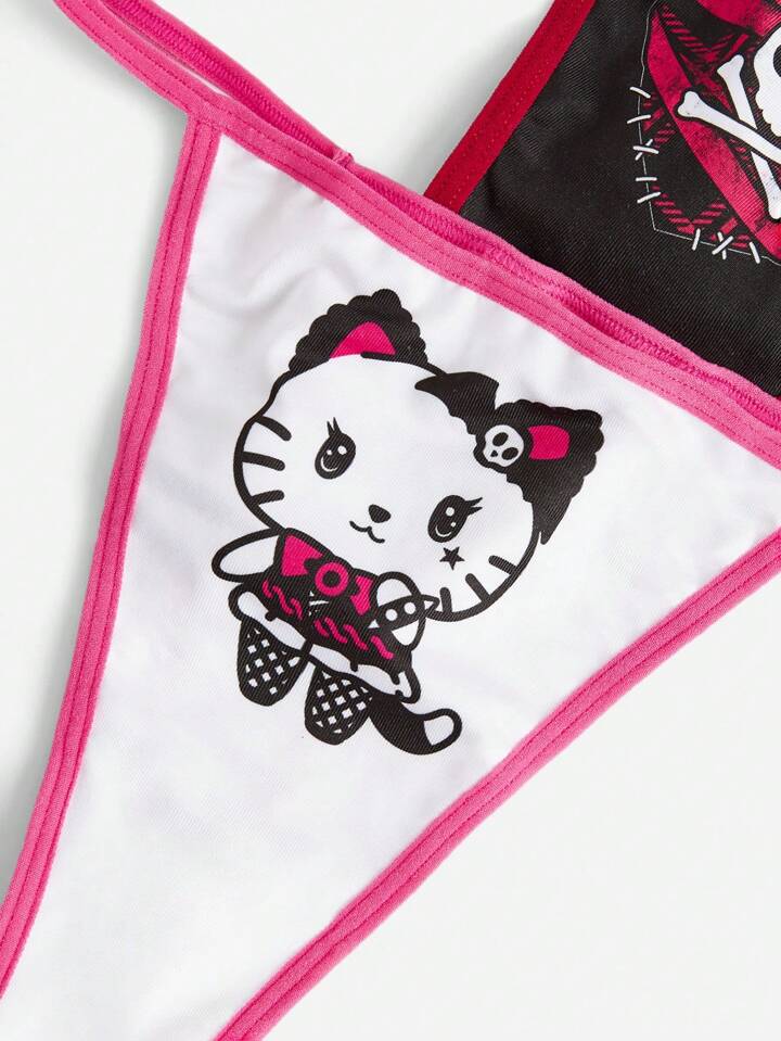Kawaii 3 Packe Tanga Set Cartoon Grafik, Kontrastsaum,