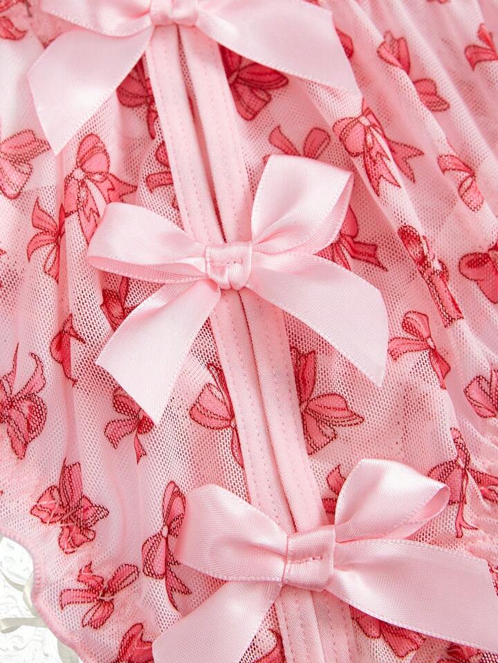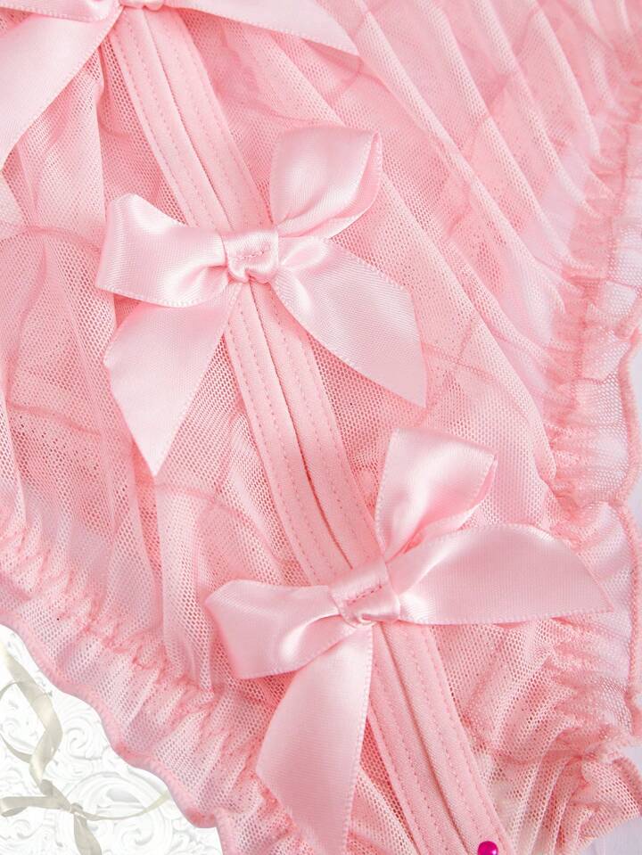Kawaii 3 Packe Höschen mit Kirsche Muster, Schleife Dekor, Mesh