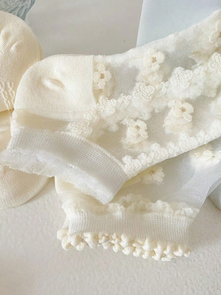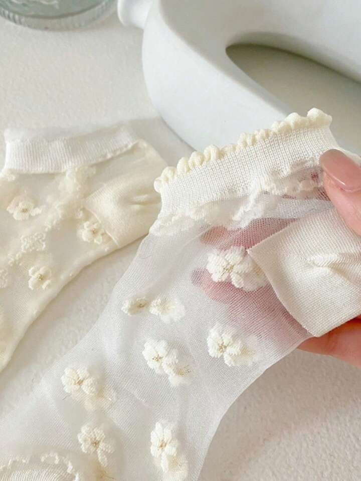 Kawaii 3 Paar Zufällige Blumen Glas Seide Spitze Dünne Niedliche Knöchelsocken