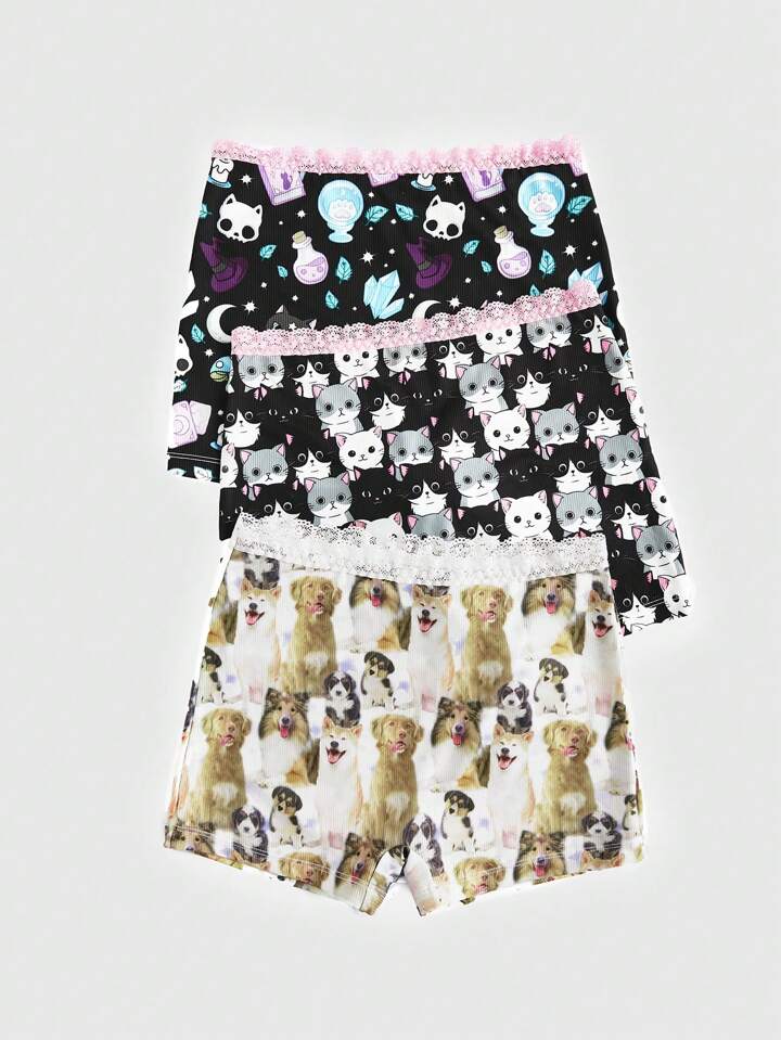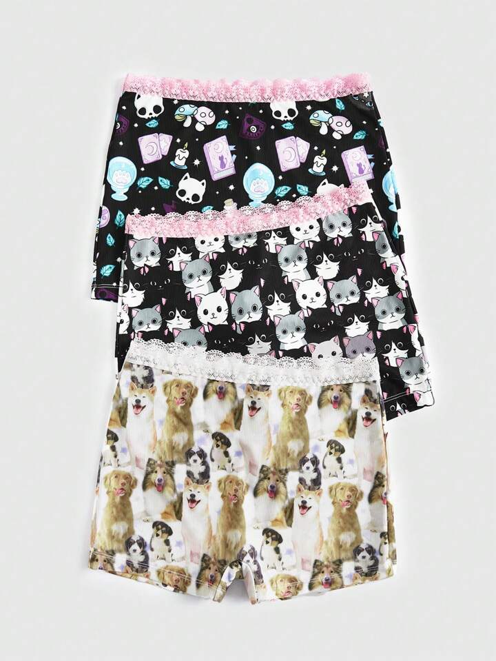 Kawaii 3 Stücke Boyshorts mit Cartoon Grafik