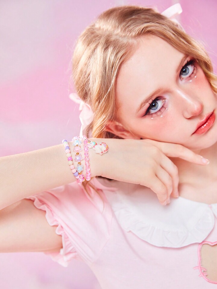 Kawaii 3 Stücke süßes Kunststoff Einhorn Charm Perlenarmband für Frauen zur täglichen Dekoration