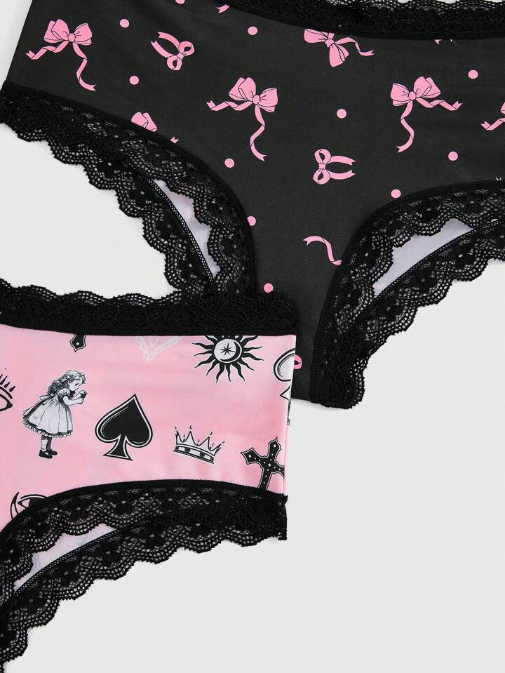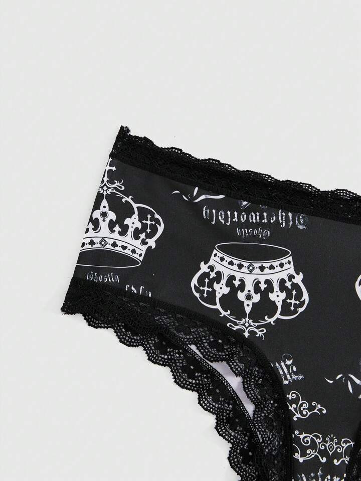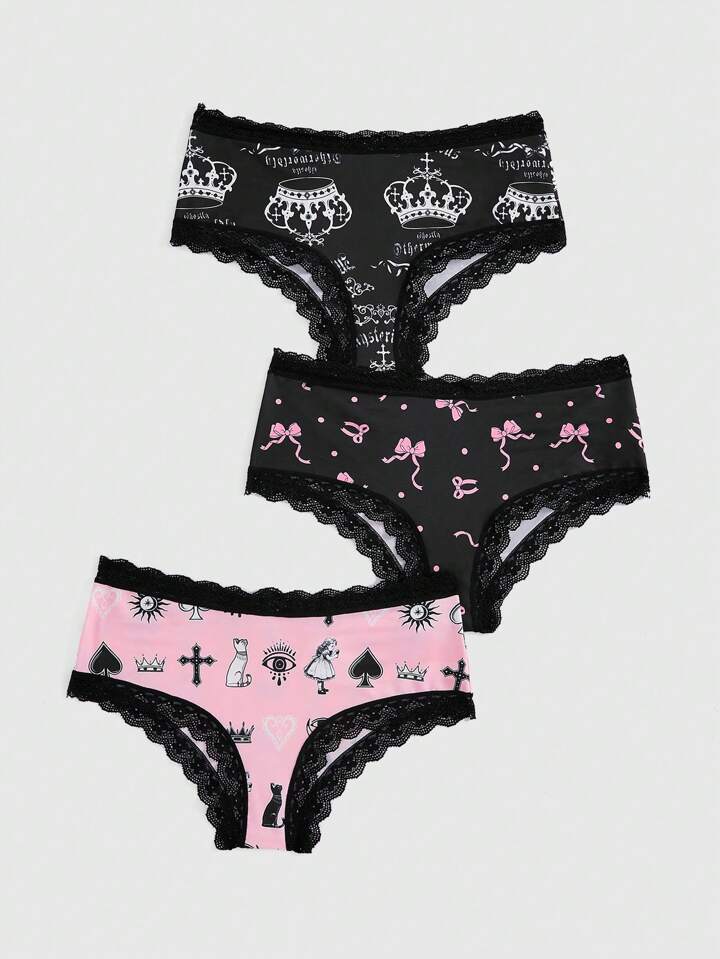 Kawaii 3 Stücke/set Spitzensaum Krone & Schleifenmuster Bedruckte Dreiecks Slips