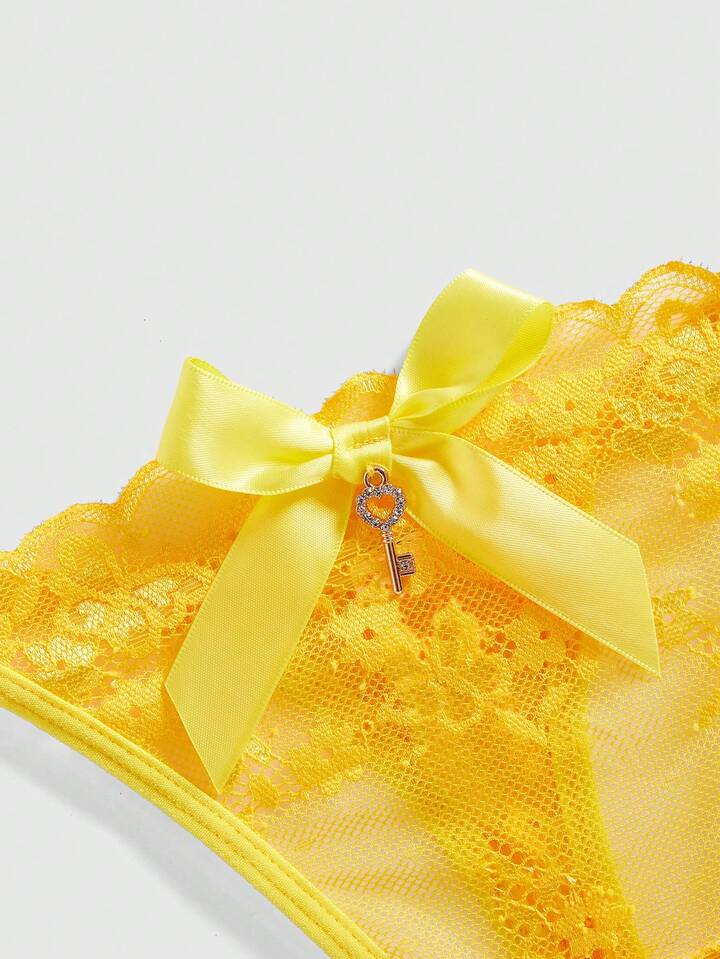 Kawaii 3 Stück Damen sexy und romantische farbige Spitzen String Dessous mit zarter Schleife Anhänger