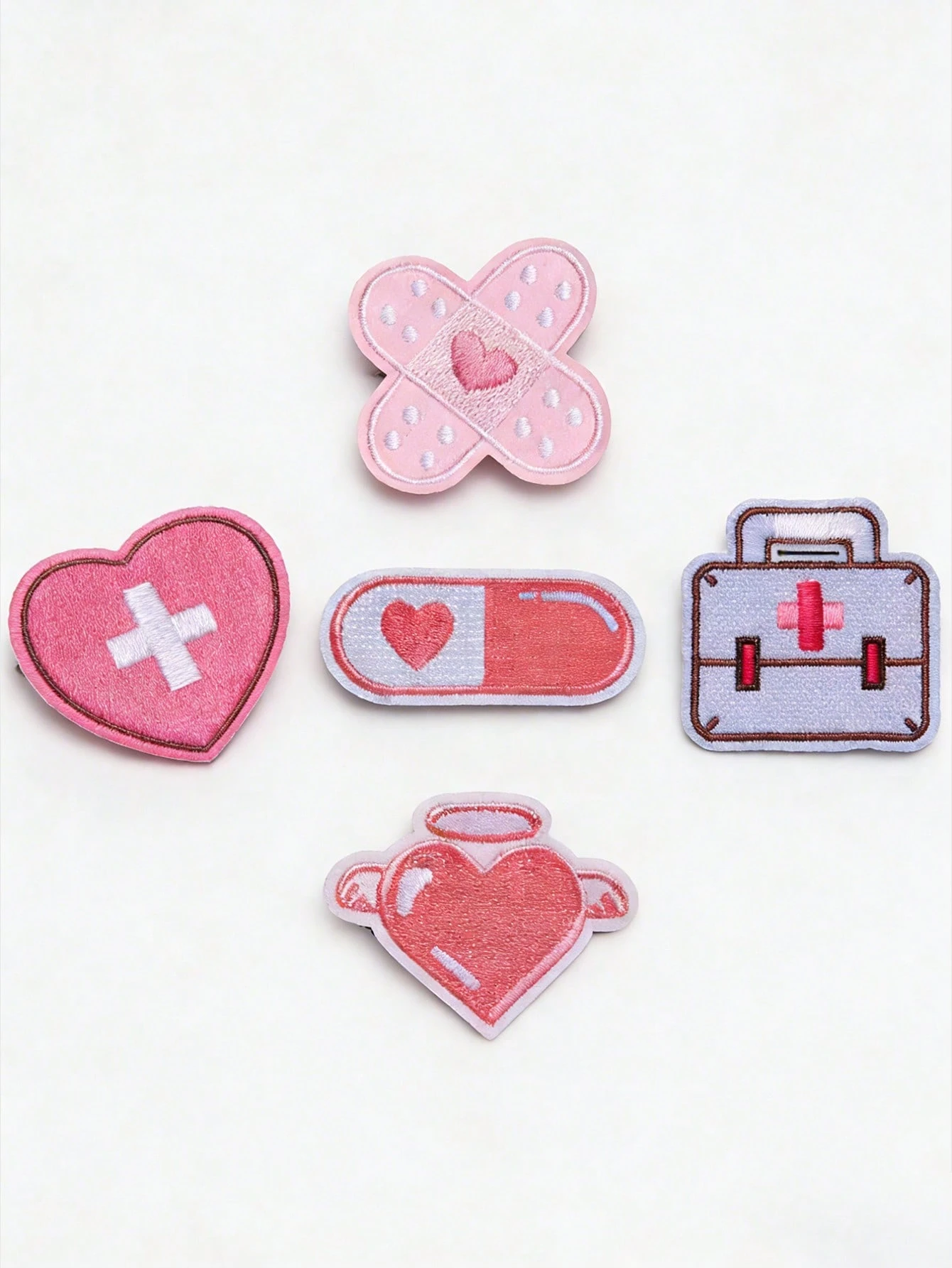 Kawaii 5 zufällige Y2K Pflaster, Haarspange mit Liebeselement, süße kontrastfarbige zweidimensionale Entenschnabelspange, Lolita kleine Haarspangen Kombination.