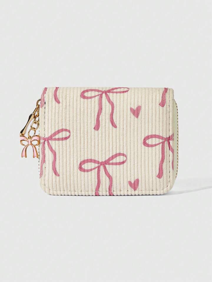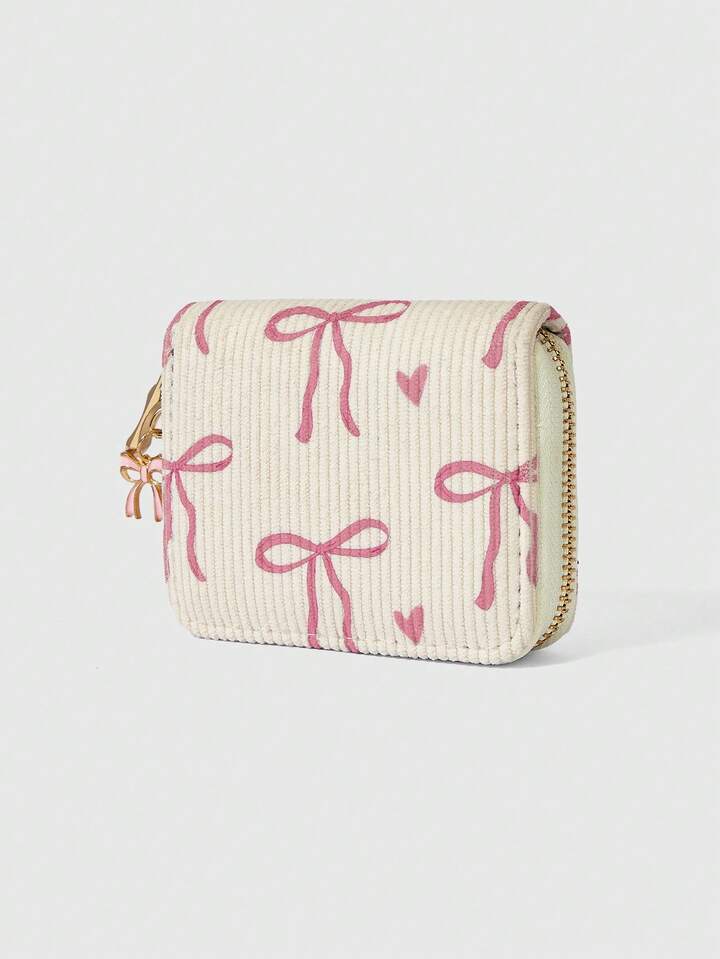 Kawaii Herbst- und Wintergeldbörse mit rosa Fellschleife