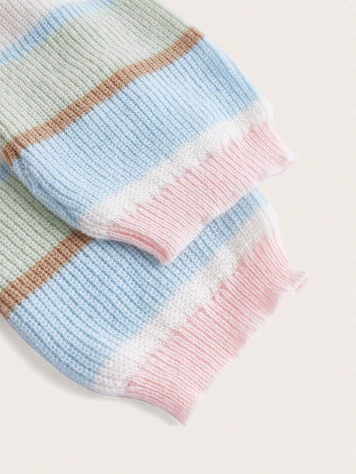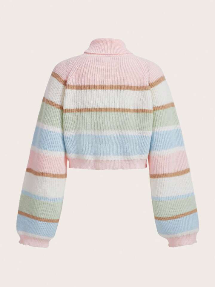 Kawaii Pullover mit Bärenstickerei, Streifenmuster, Farbblock Raglanärmeln und Stehkragen