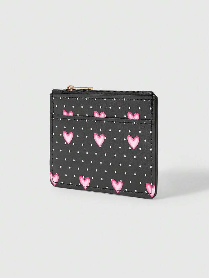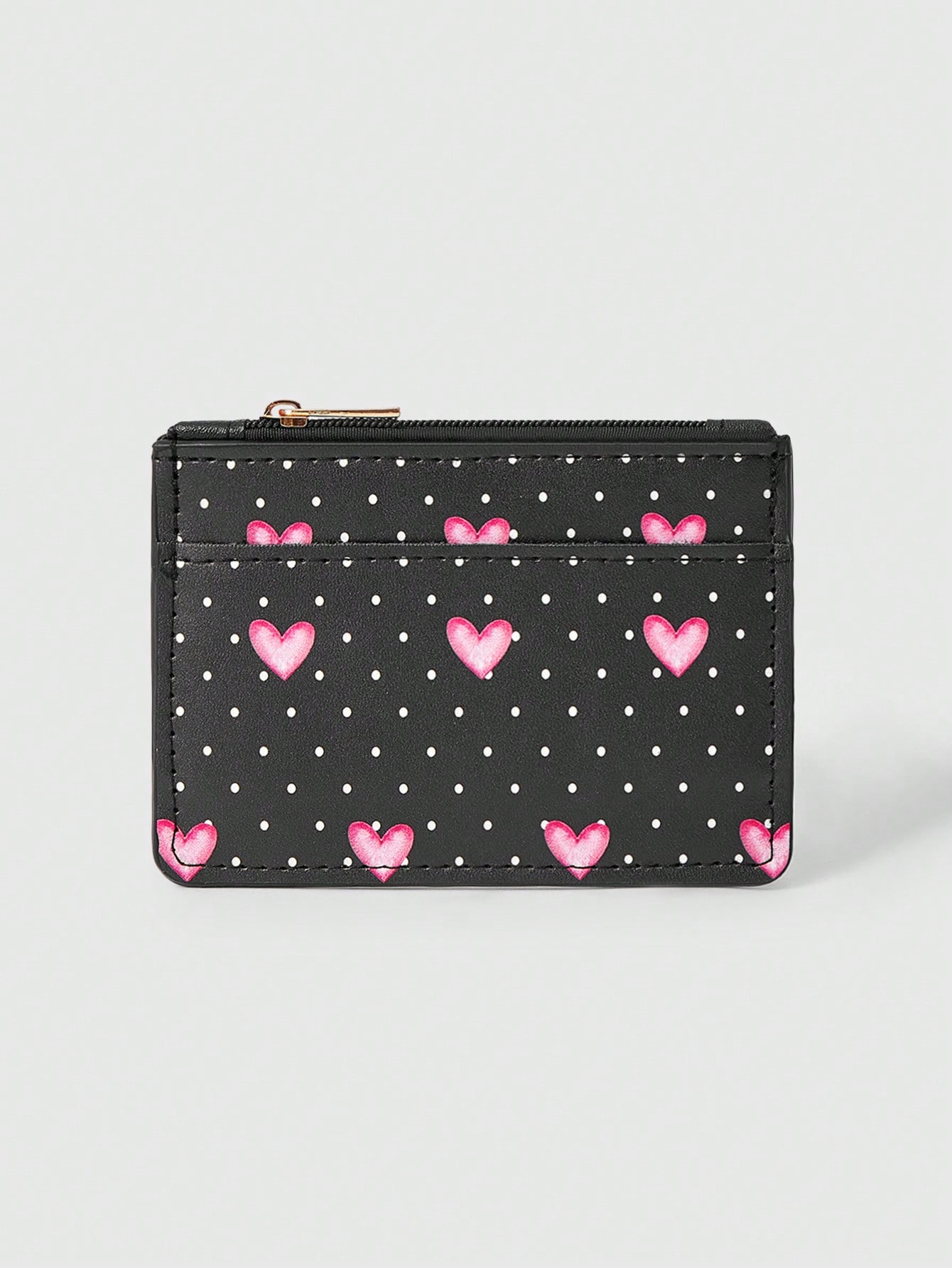 Kawaii Schwarze Polka Punkt Rosa Herz Kartentasche