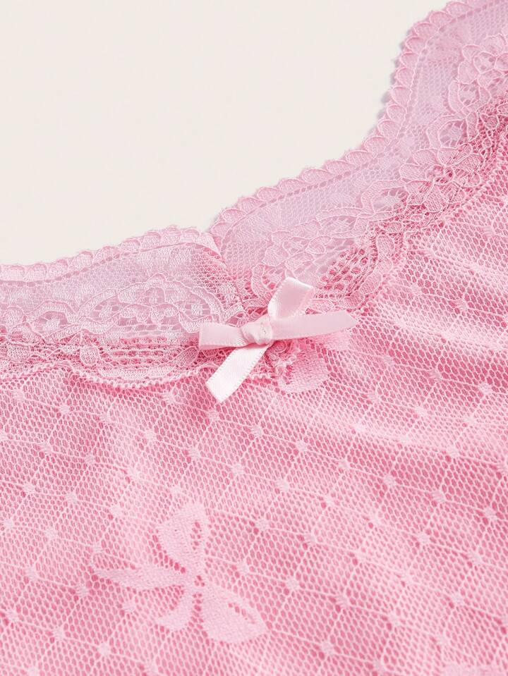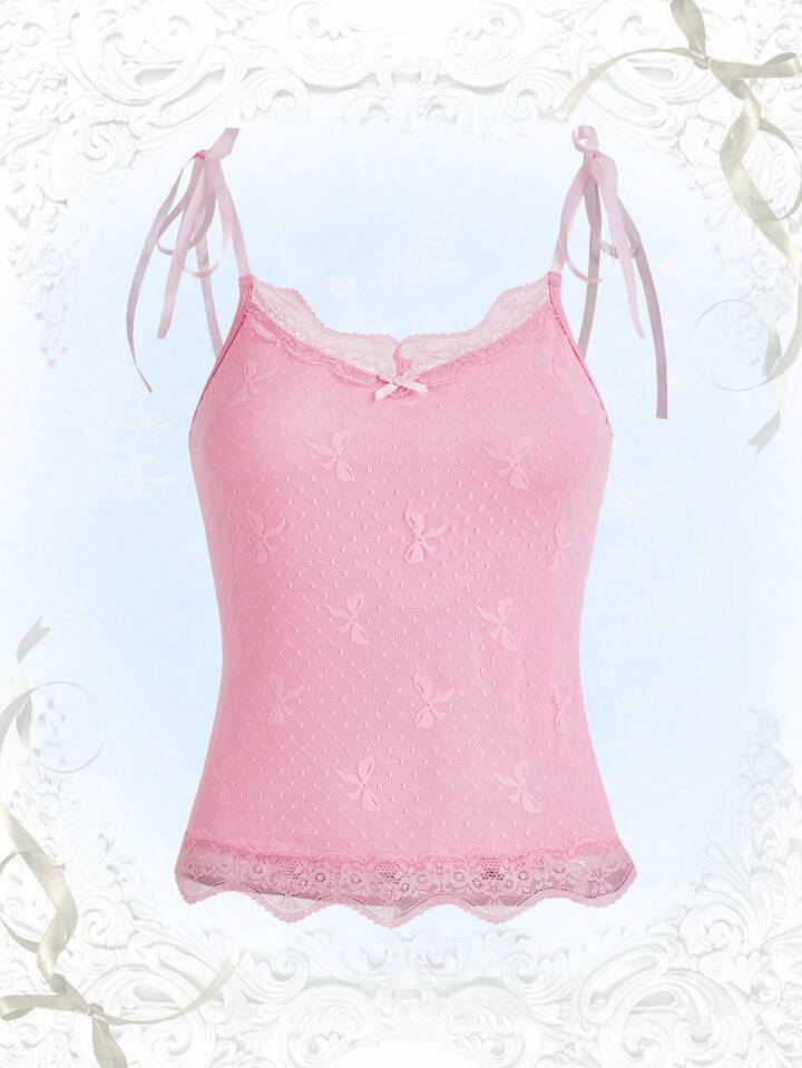 Kawaii Cami Top mit Schleife Muster, Kontrast Spitzen,