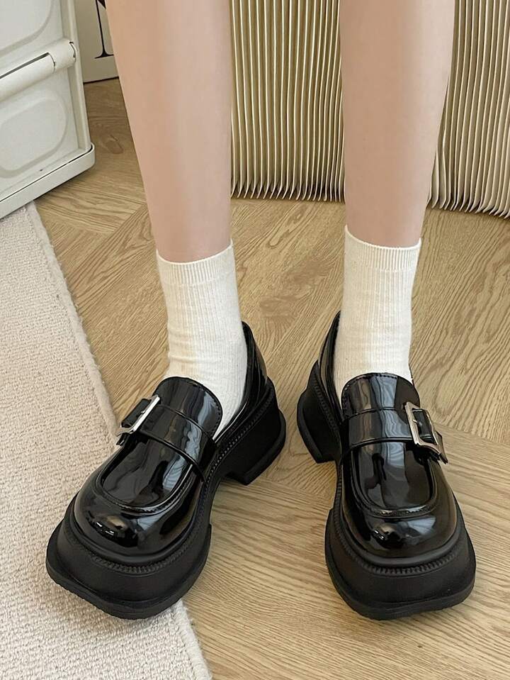 Kawaii Schuhe Schnalle Dekor, Damen Flatform