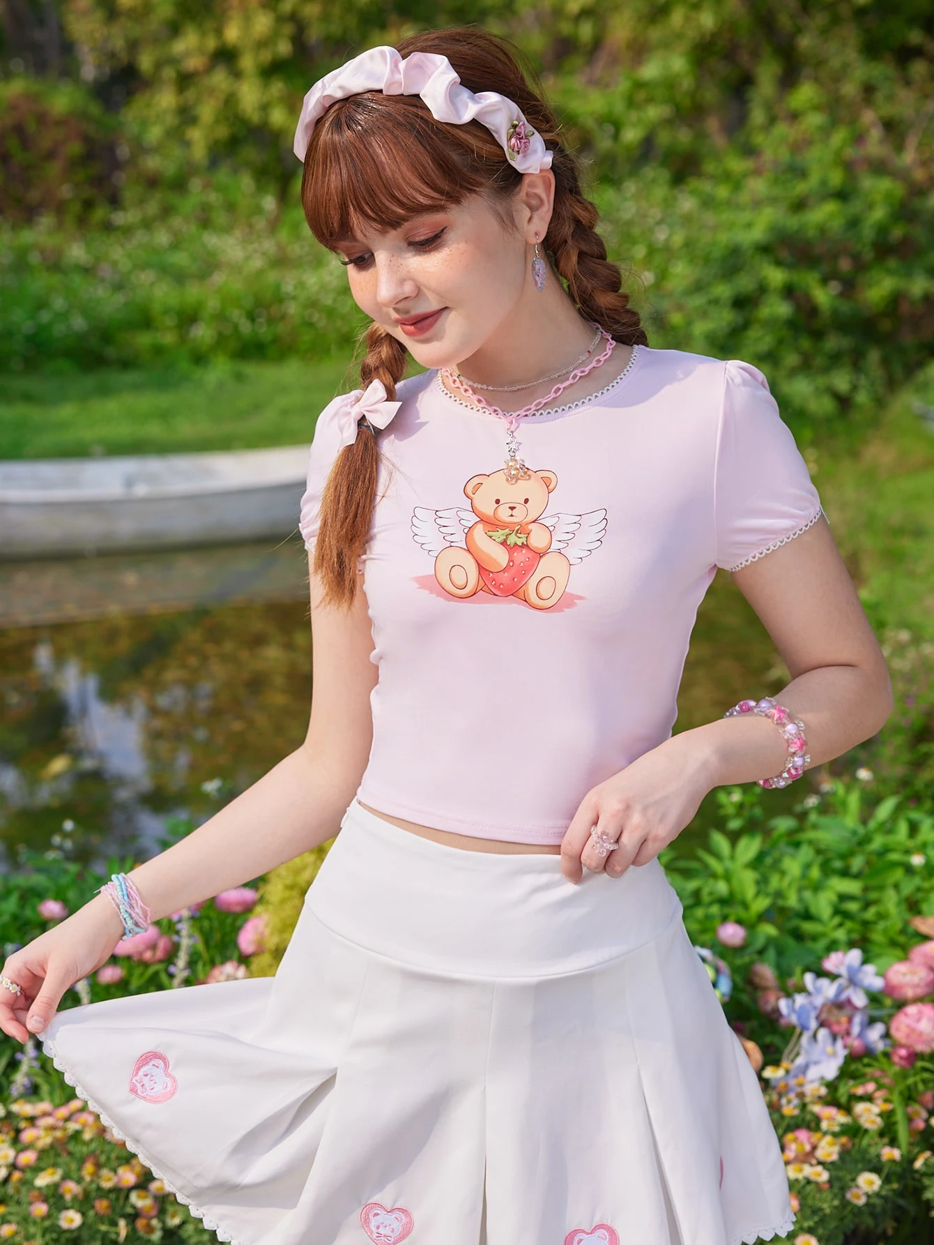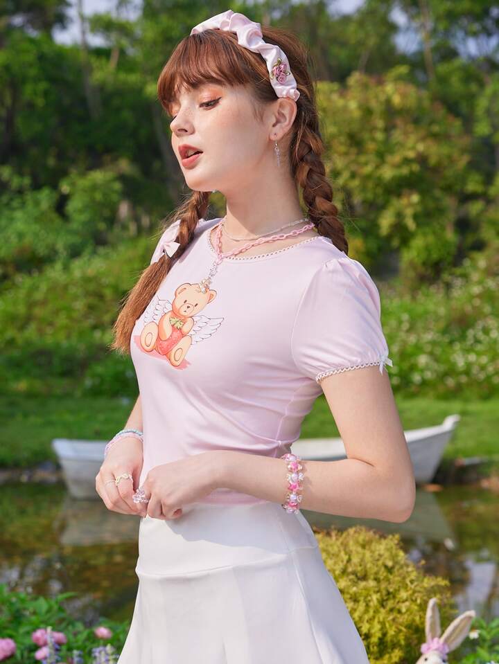 Kawaii Durchsichtige Spitze Cartoons Lässig Damen T-Shirts