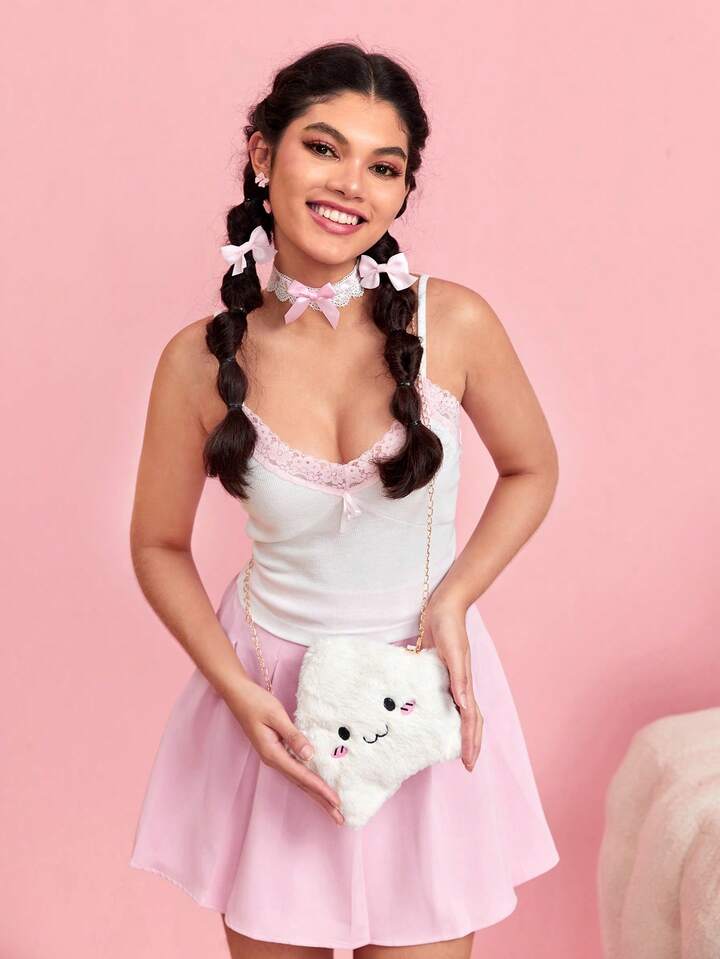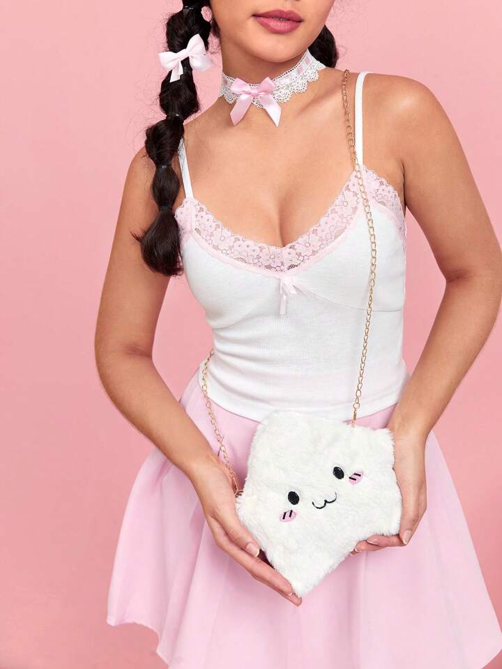Kawaii Neuheitstasche mit Cartoon Design, Kette, fusselig