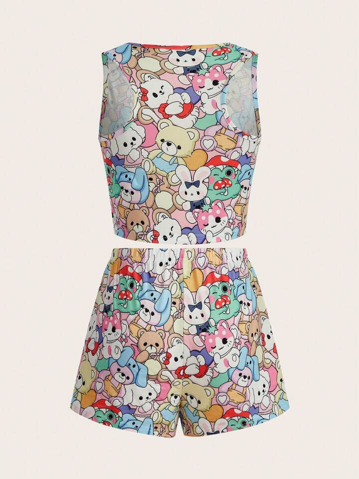 Kawaii Pyjama Set mit Cartoon Grafik,