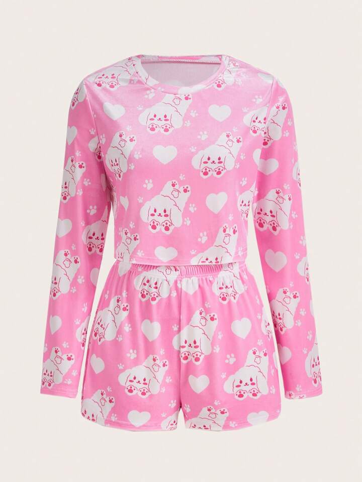 Kawaii Pyjama Set mit Cartoon Grafik,
