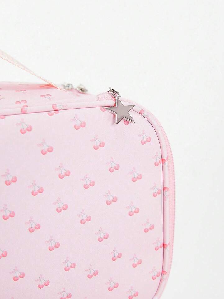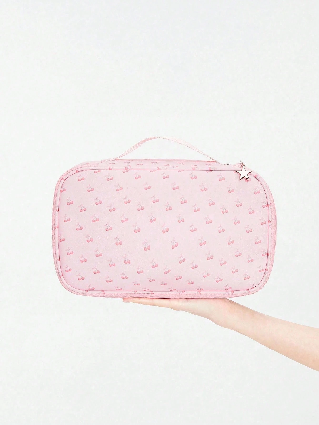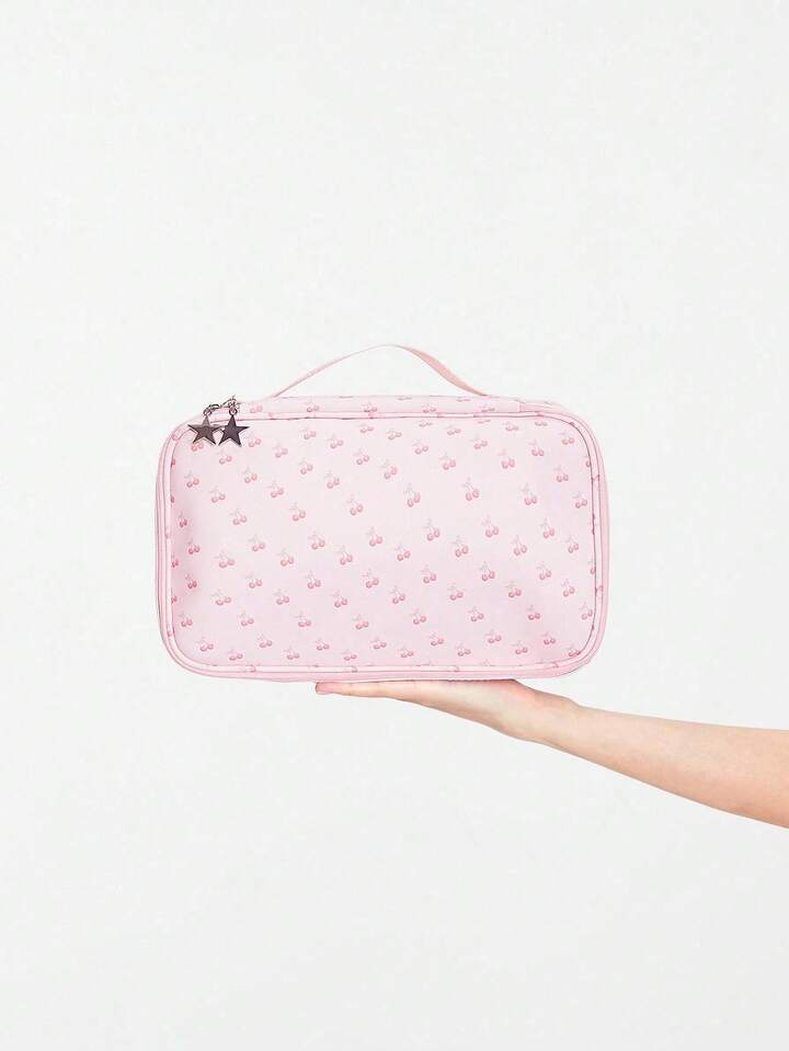 Kawaii Große, strapazierfähige Reisetasche mit Cartoon-Design in Rosa Kirschen, Clutch-Tasche, Kosmetiktasche 920022