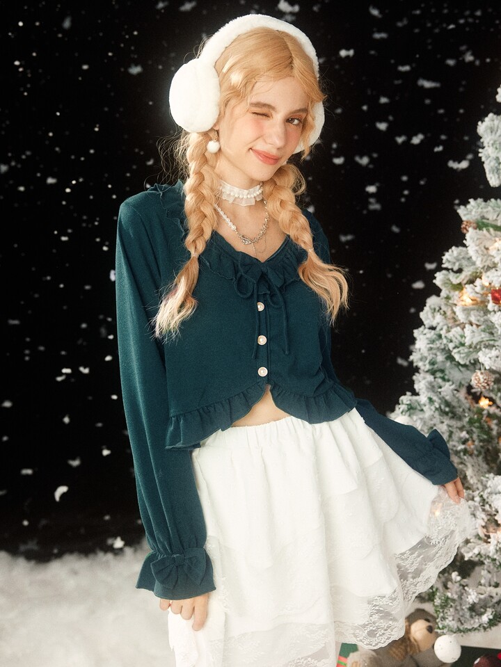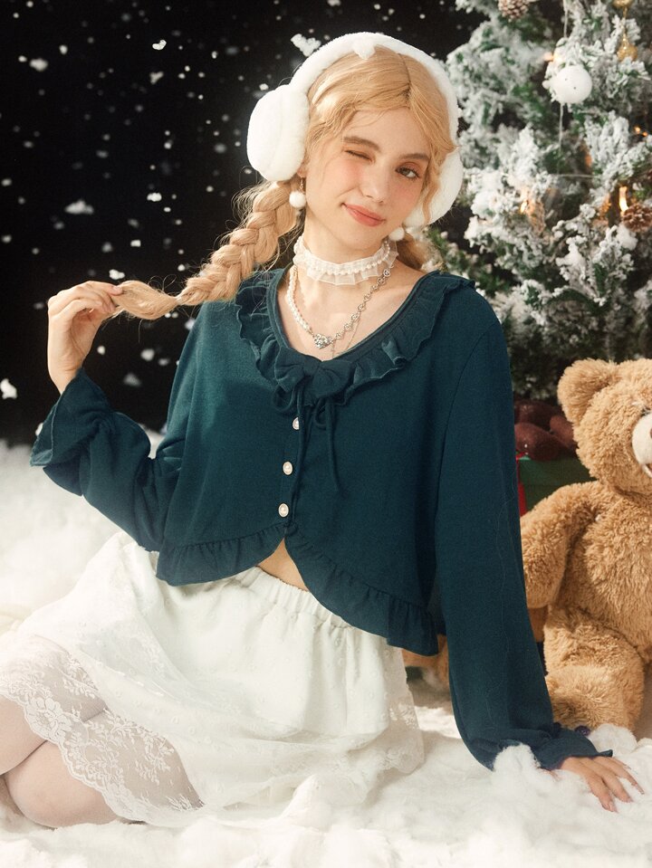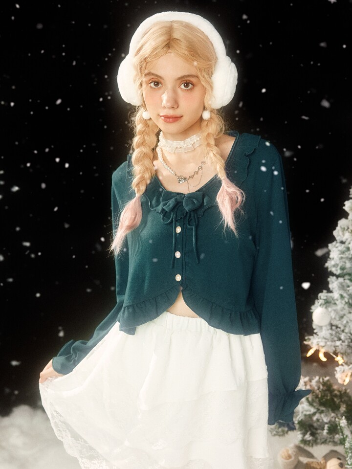 Kawaii T-Shirt mit Band vorne, Rüschen