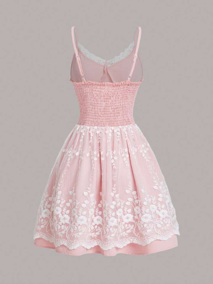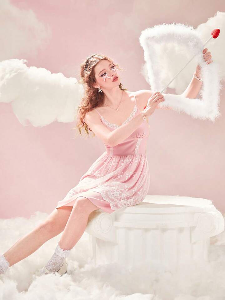 Kawaii Cami Kleid mit Kontrast Spitzen