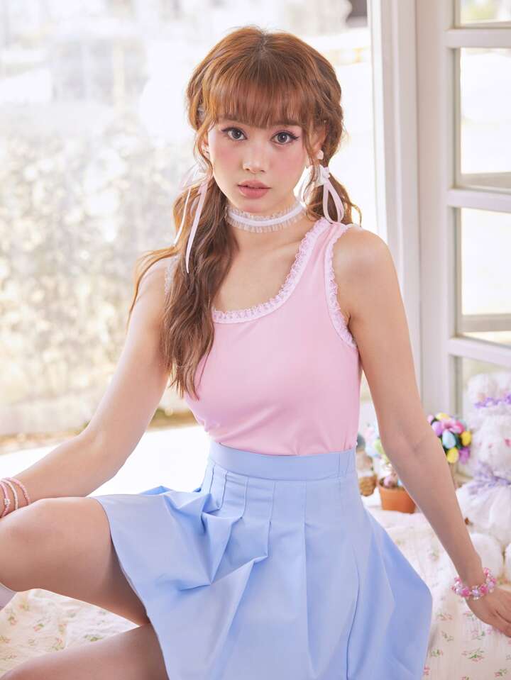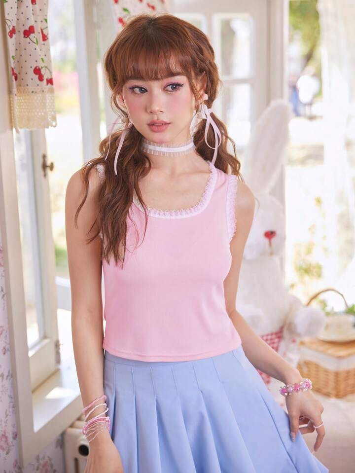 Kawaii Durchsichtige Spitze Rippenstrick Einfarbig Lässig Damen Tank Tops & Camis