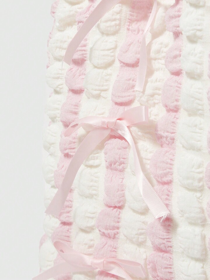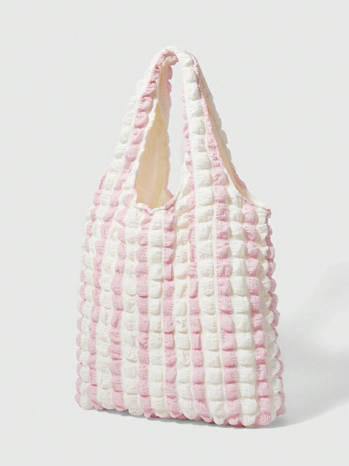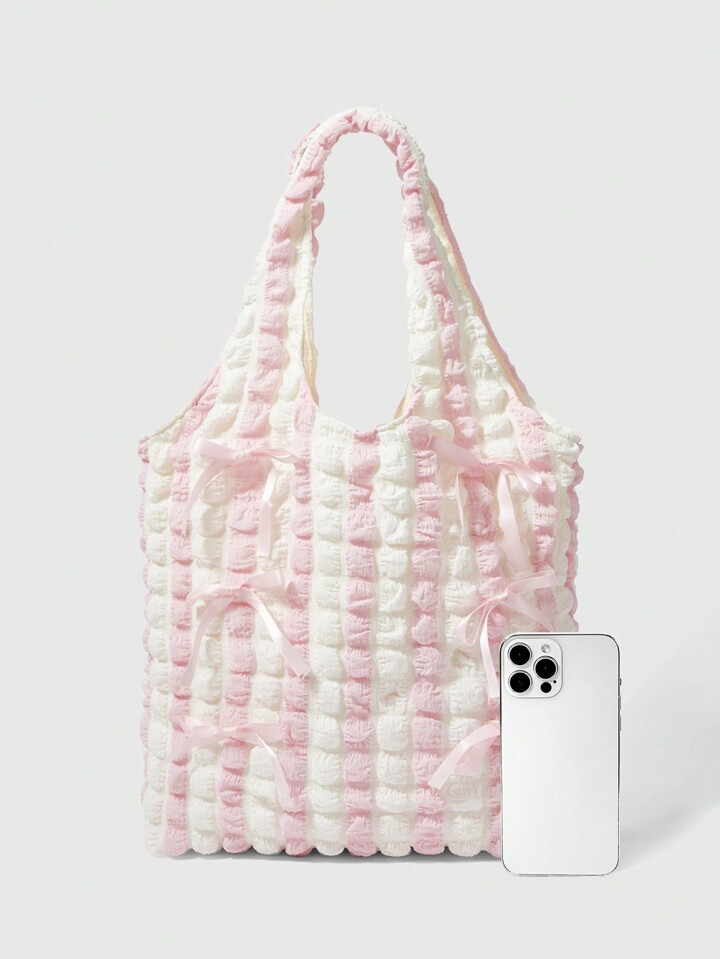Kawaii Niedliche rosa Schultertasche mit Schleifenstreifen für Valentinstag