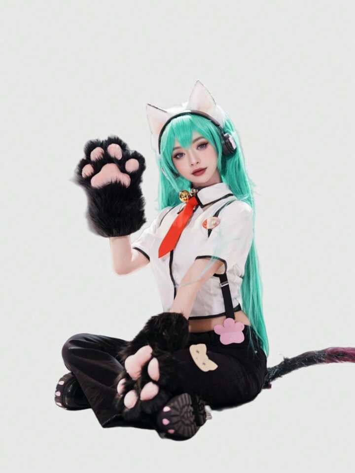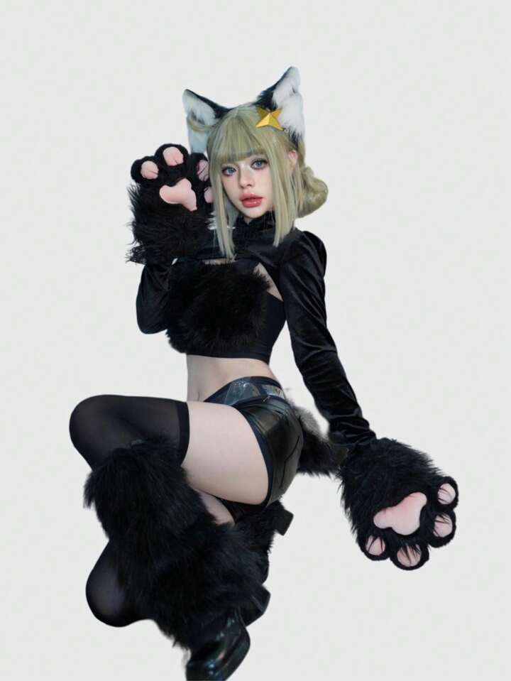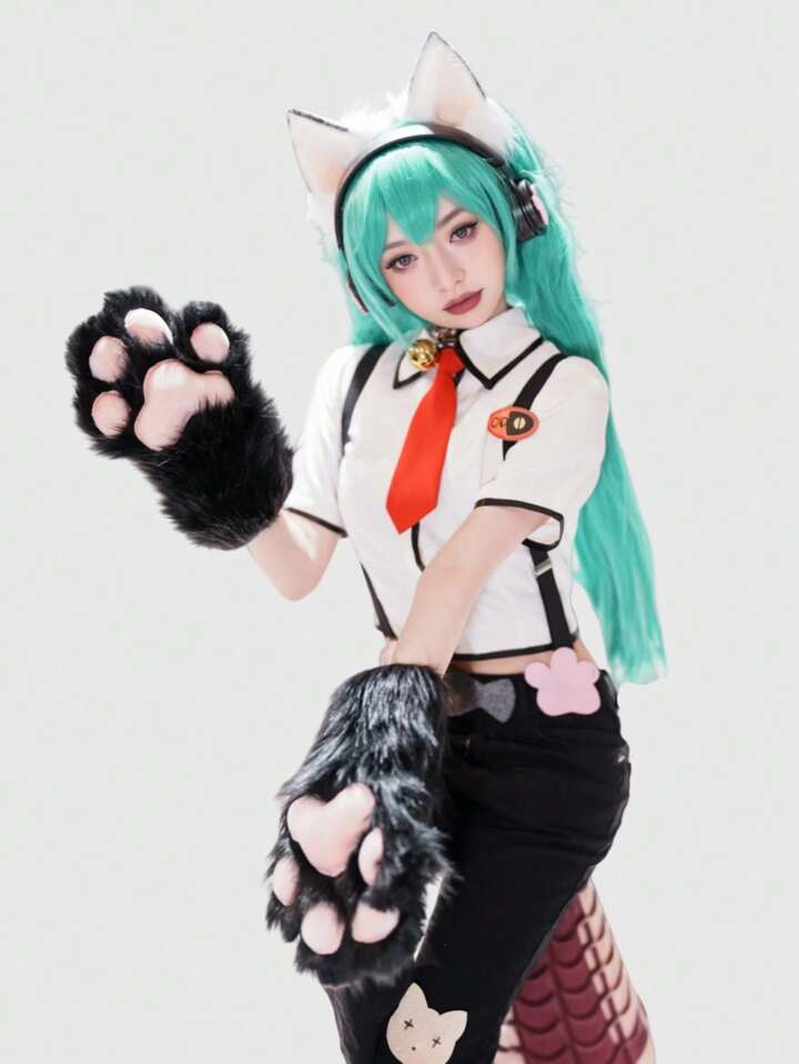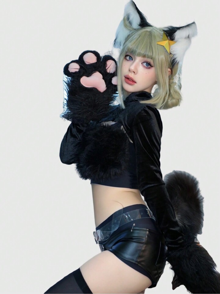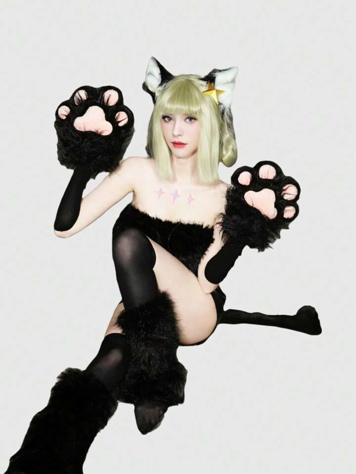 Kawaii Süße Cartoon Katzenpfoten Plüschhandschuhe, warm für Herbst/Winter, Kostüme für Cosplay Partys, Lolita/Anime 2. Generation Katzen Pfoten Handschuhe mit Sound Funktion