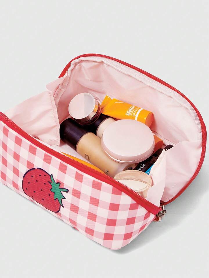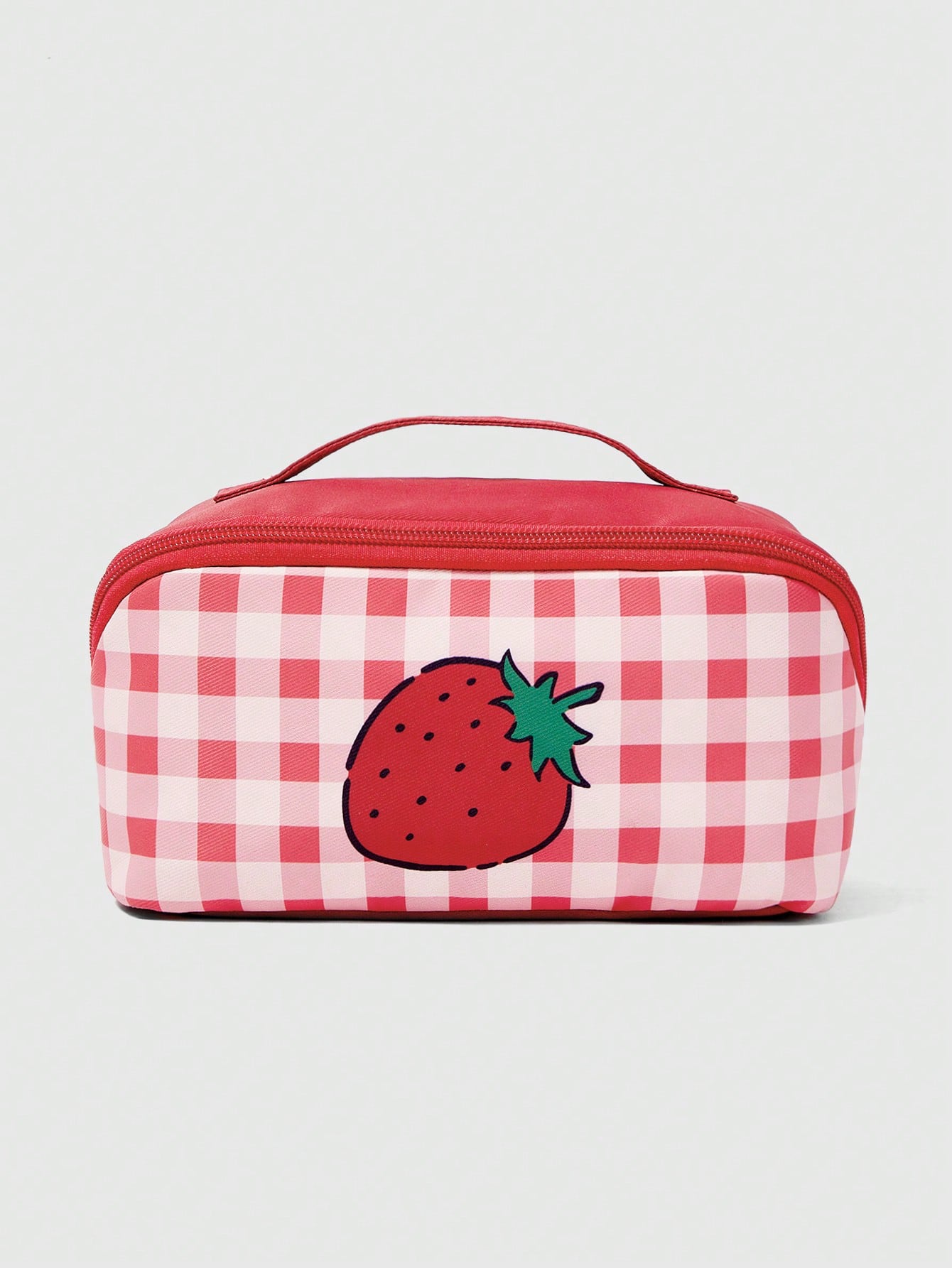Kawaii Süße Cartoon Erdbeere Patchwork Kosmetiktasche mit großem Volumen für Frauen